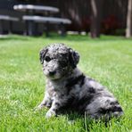 Einstein is a gorgeous mini size Merle poodle. He has a calm and intelligent personality, he is very trainable and loyal and has consistently given us amazing puppies with a variety of colors!