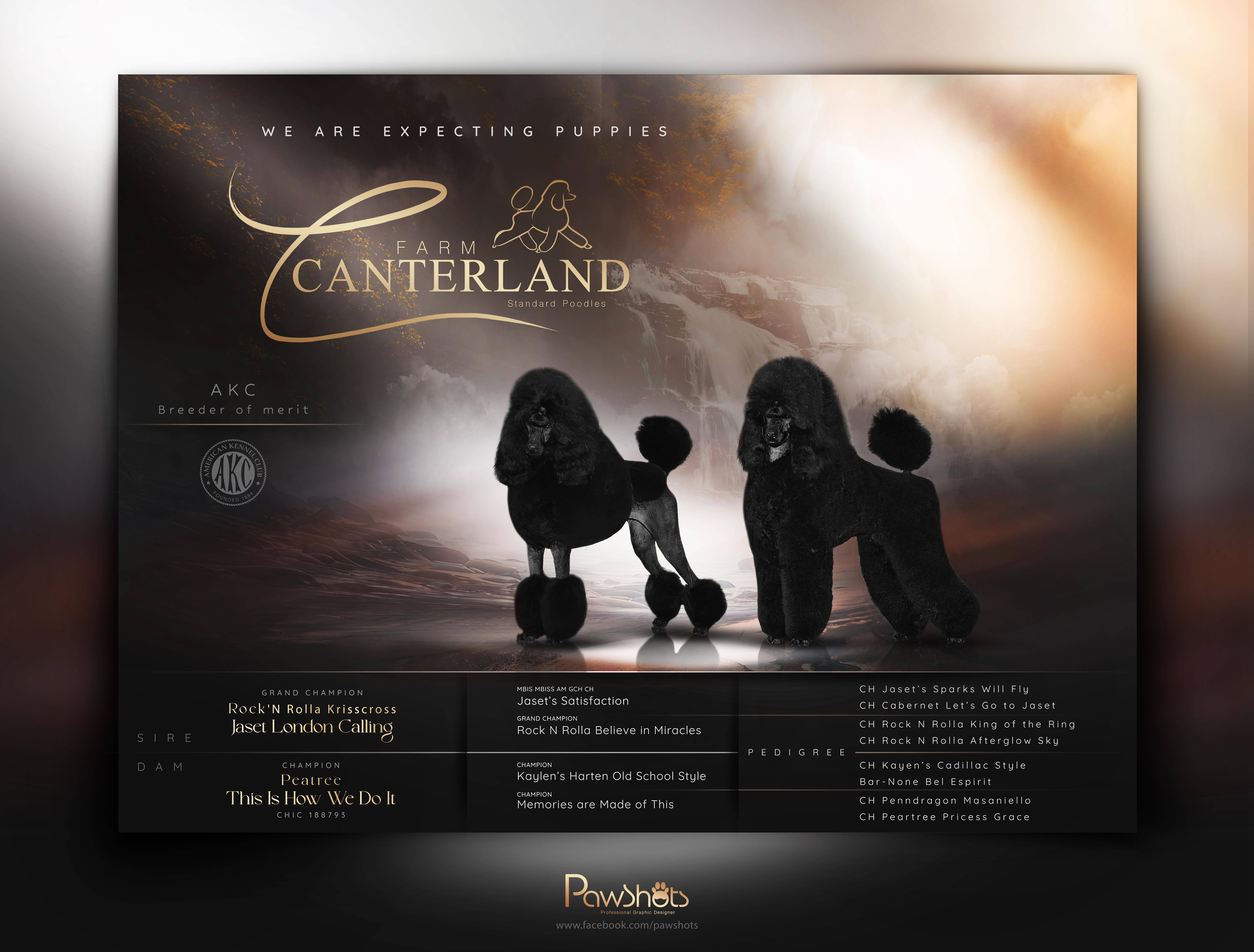 I'm Paulette A., the breeder behind Canterland Farm located in Carlton, OR. Canterland Farms is a preservationist breeder. We breed show quality health tested Black or White Standard Poodles. We are breeders who do everything we can to better the breed and ensure our dogs and puppies are able to get the very most out of life become your treasured family member.
