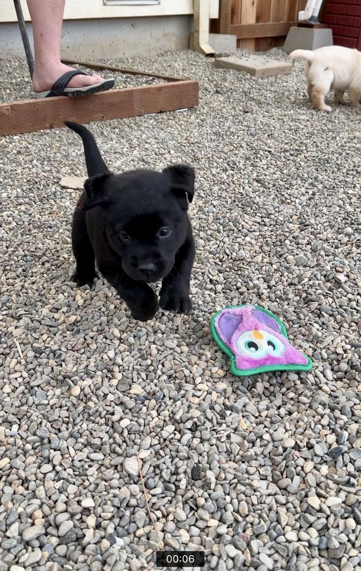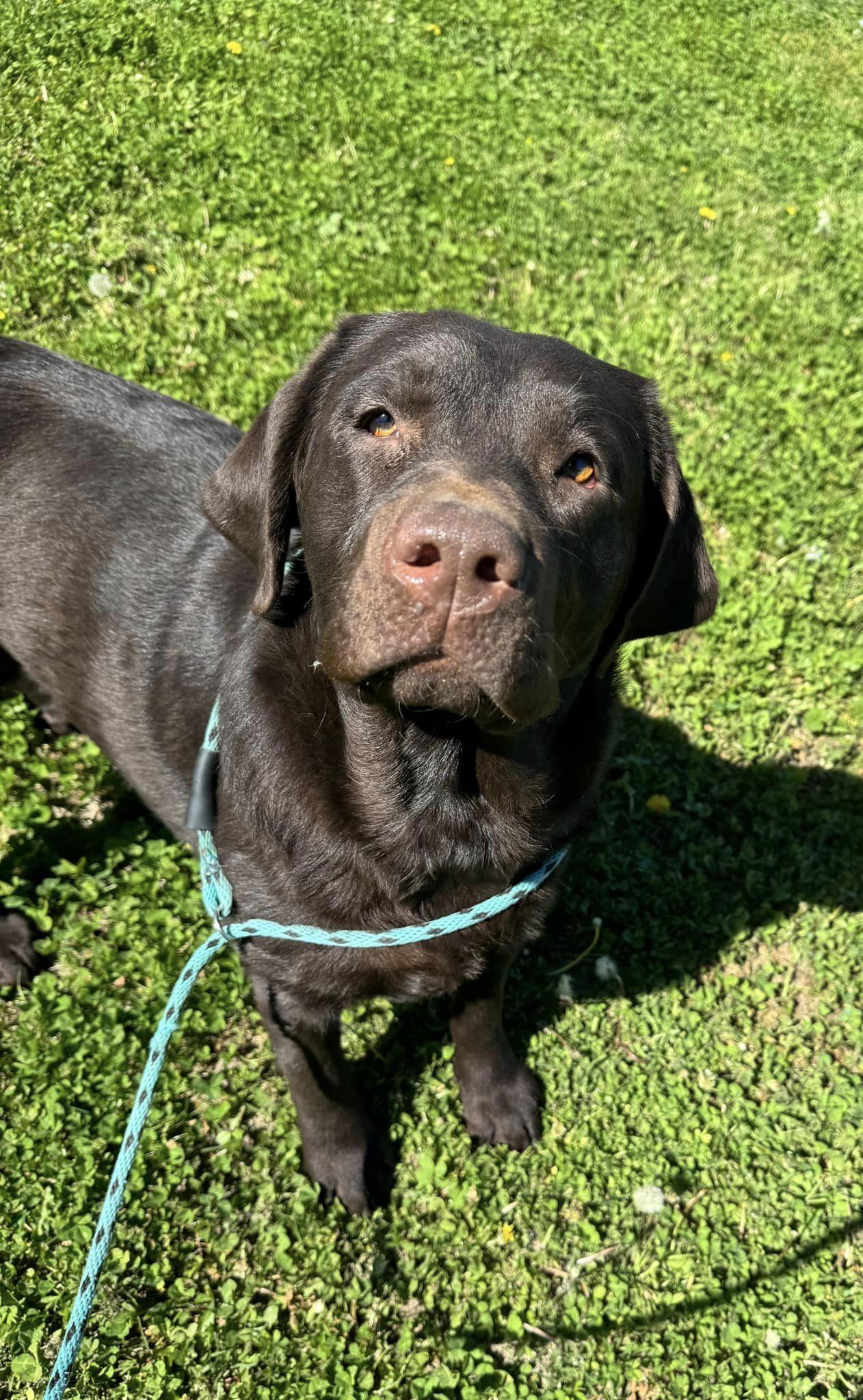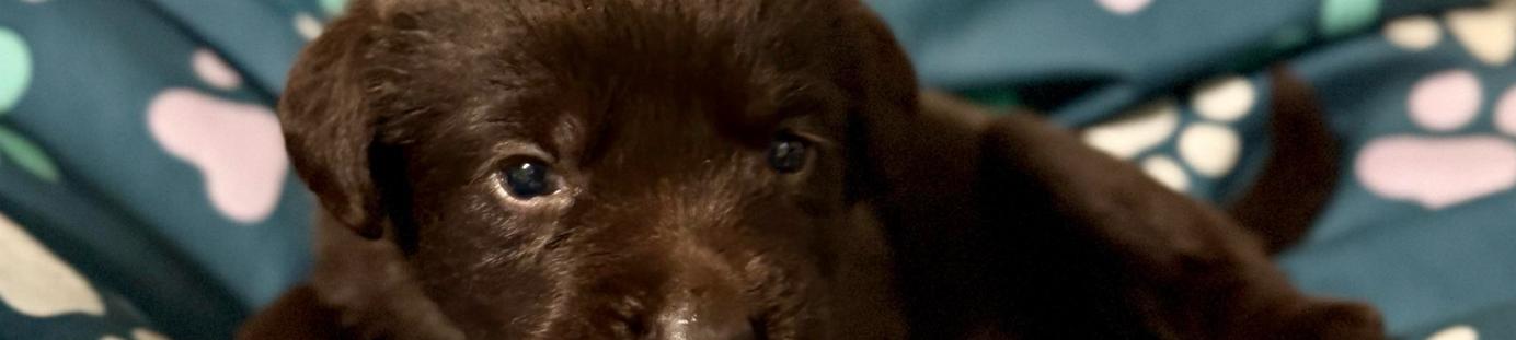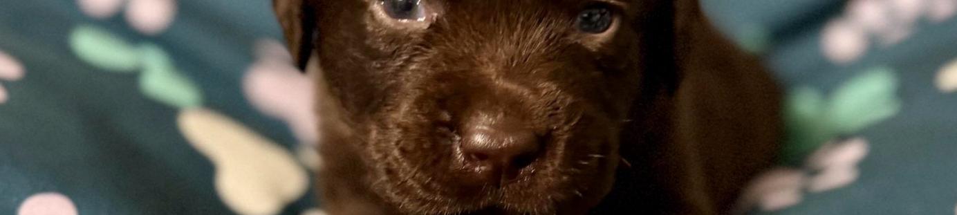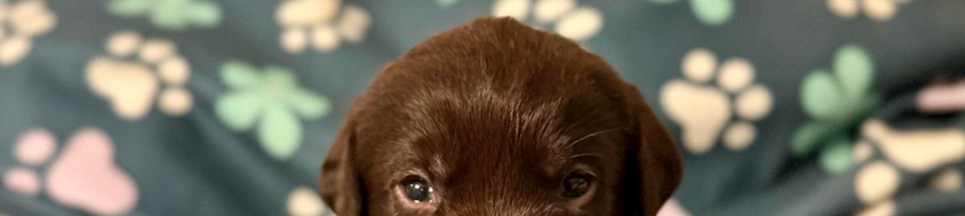 Bean is our lovely chocolate girl that we waited YEARS for. She has a lot of the characteristics we look for in service dog work. She learns crazy fast. She will watch me do a training session with another dog and try to mimic what they are doing for rewards. She is both food motivated and really wants to make her person happy. This is a fantastic combo we hope she passes to her puppies. Her hobbies include wrestling with her housemates, bathing in the water buckers, and bringing me anything she can fit in her mouth. Bean and a VERY mellow girl and is one of the easiest puppies I have ever raised.