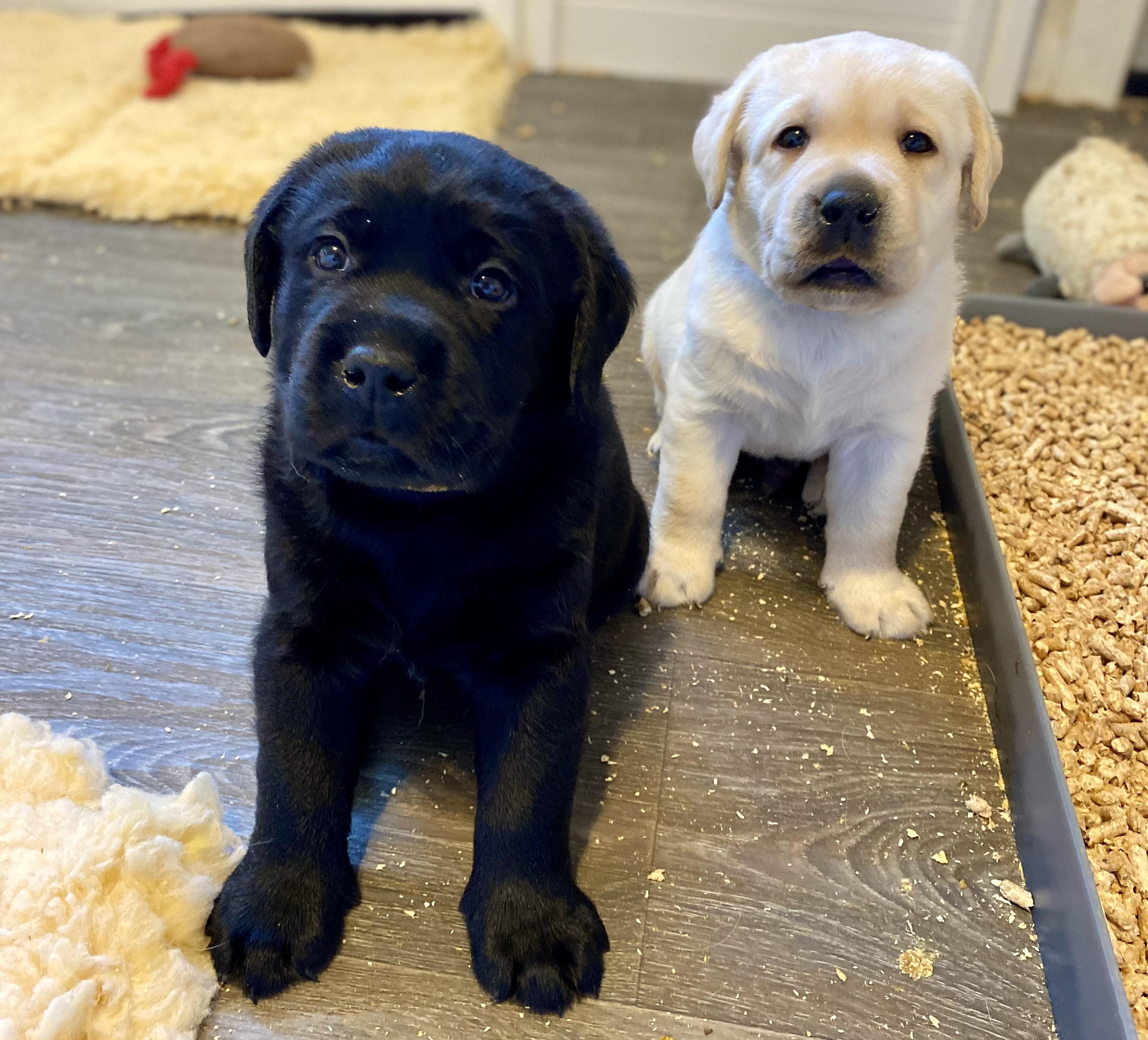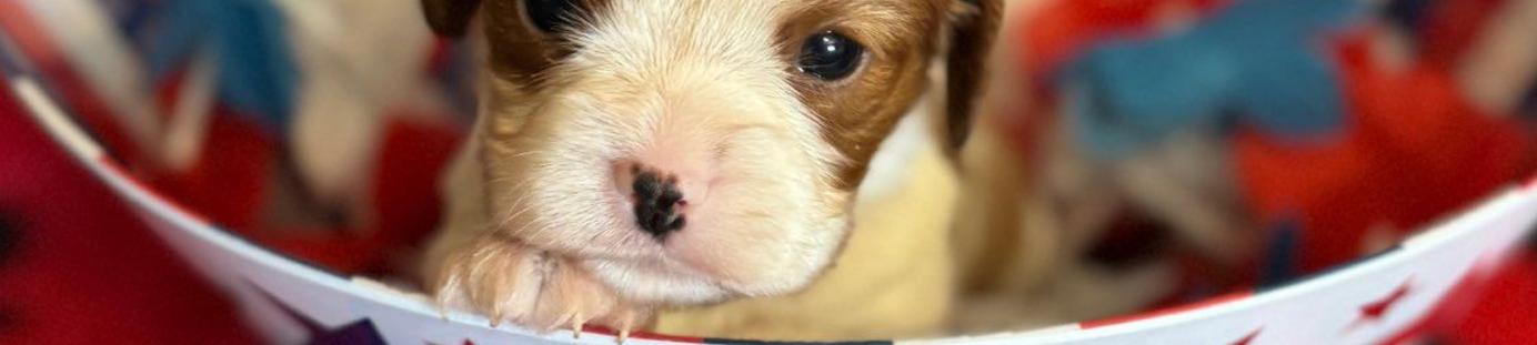 Our Cavalier King Charles Spaniel puppies include blenheim, ruby, tri-color, and black and tan. Labrador Retriever puppies include black, chocolate, and yellow. Colors will vary depending on the parent dogs.