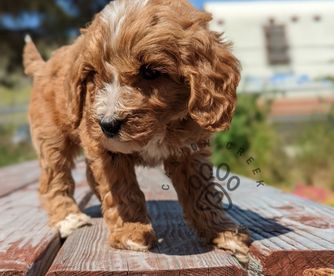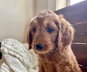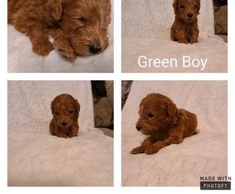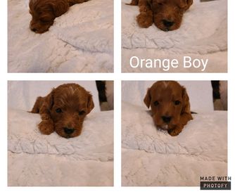 Our Cavapoo puppies are apricot. Goldendoodle puppies are red. Colors will vary depending on the parent dogs.