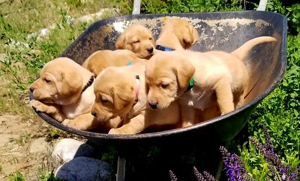 Our puppies are yellow. Colors will vary depending on the parent dogs.