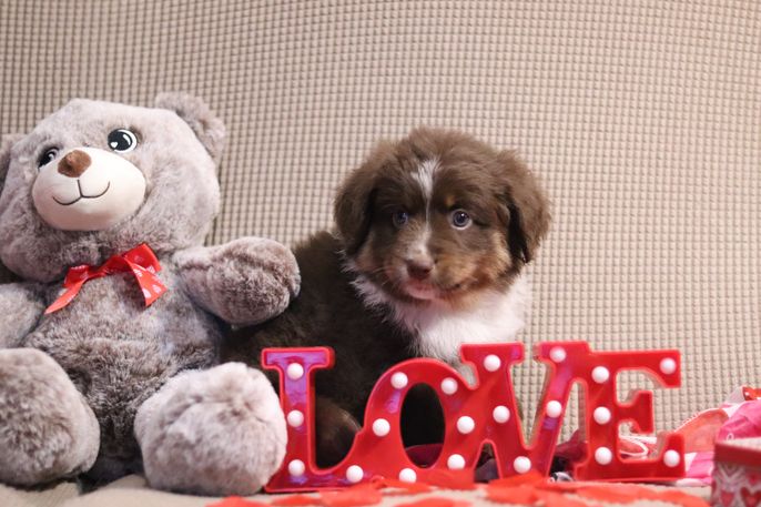Summer is a female Australian Shepherd. Carefully selected as a great representative of her breed, Joyce decided to make her part of their program. Joyce has passed Good Dog’s screening process, which involved a review of their breeding practices, environment, and the mental and physical health of their dogs.