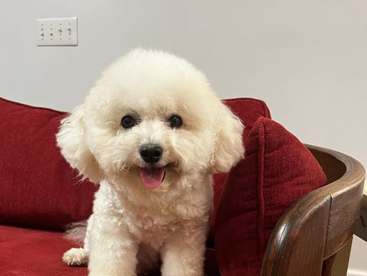 Coco is a female Bichon Frise. Carefully selected as a great representative of her breed, Jackie & Dan decided to make her part of their program. Jackie & Dan has passed Good Dog’s screening process, which involved a review of their breeding practices, environment, and the mental and physical health of their dogs.