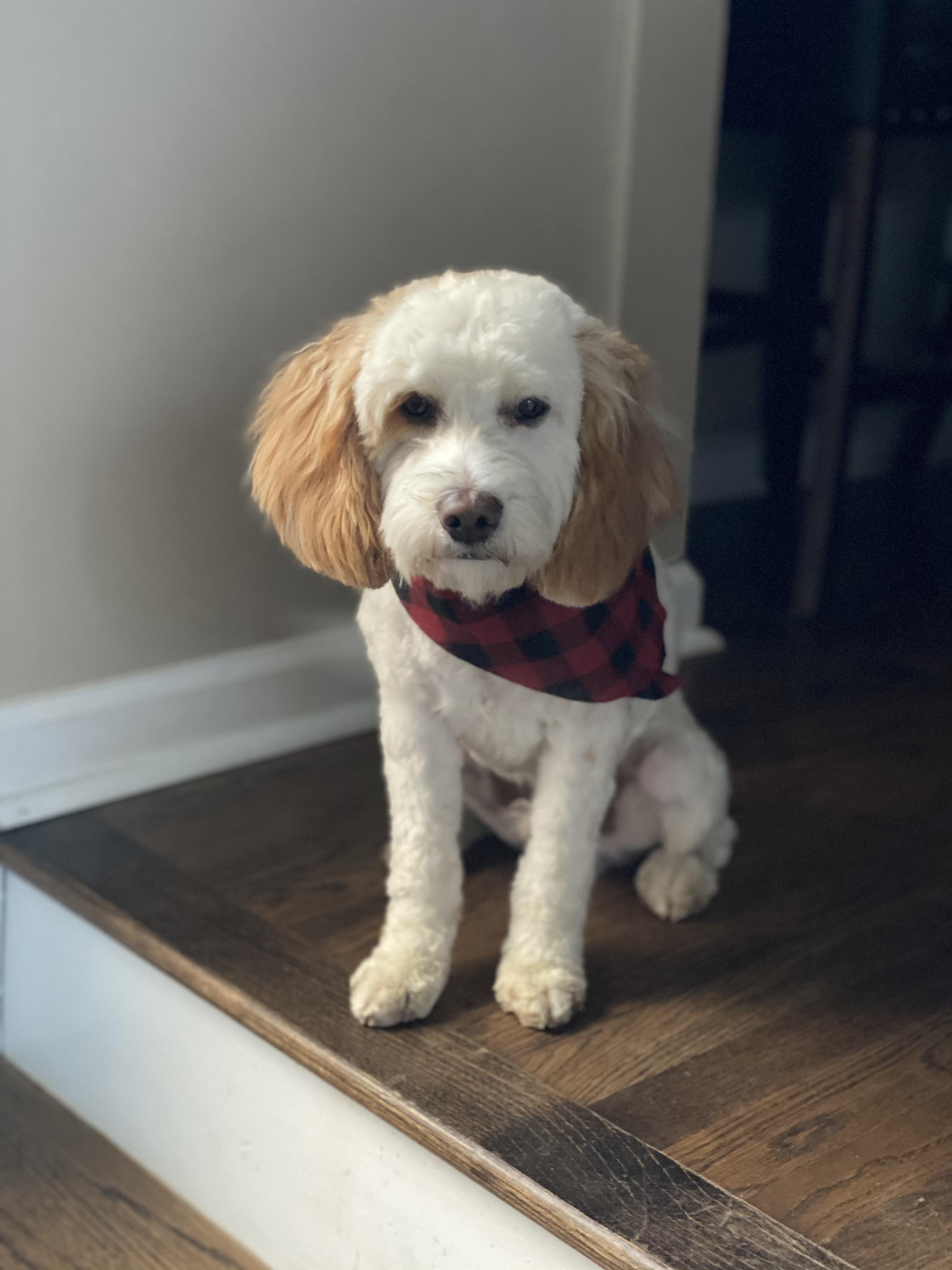 Milo is a male Goldendoodle. Carefully selected as a great representative of his breed, Sheri decided to make him part of their program. Sheri has passed Good Dog’s screening process, which involved a review of their breeding practices, environment, and the mental and physical health of their dogs.