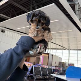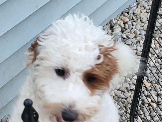 Petite, multi generational parti. Cricket weighs 14 lbs and is full of life. She loves to snuggle and loves children of all ages. Extremely smart and is always up for adventures. Loves car rides, boat rides and let's not leave out the ATV. Her temperament is loveable and she is all about the snuggles and play time !