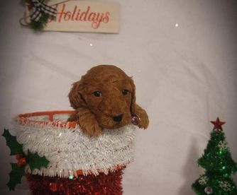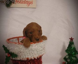 He is a very affectionate little guy who is gentle, kind-hearted, and loves to self entertain. He enjoys snuggles but is ok doing his own thing too. Very good-natured His beautiful color of red has not faded and he normally throws soft curls in his pups coats