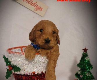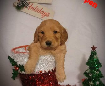 He is DNA/genetically tested and clear. Weighs 22 lbs full grown. Loves people, especially children. Gentle temperament. Off spring of Maxwell and Shyla.He is the third generation Goldendoodle
