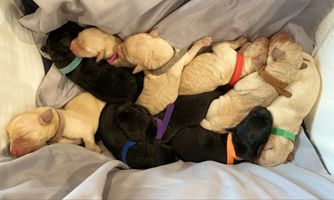 Our puppies include black and yellow. Colors will vary depending on the parent dogs.