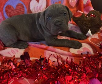 Berlin is such an amazing dog! She is a champion in 3 different registries, also an International Champion! She also holds many working dog titles including Rally Obedience and Fast Cat. She is so very smart in the typical Corso fashion and protective of her family but her temperament is so amazing a 6 yr old little girl was able to take her into the show ring and win! She is very spoiled and lives inside the house with us. This is her second and last litter and puppy availability is very limited!!