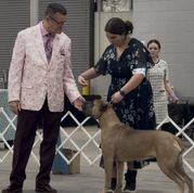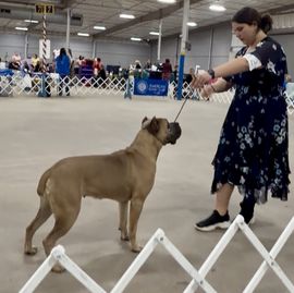 Rocker is my amazing bestest boy!! Saw his sister win the National then win Best Female at Westminster and I knew I had to have one that looked similar! I championed him at only 9 months old then got his Grand Champion at 12 months! He has been temperment tested and passed with flying colors! He has many other working dog titles including Obedience, Rally Obedience, Fast Cat, Barn Hunt, CGC, CGCU, CGCA, and ATT. He won the Junior Sweepstakes at the RC Nationals at only 13 months then went on to win a big Group 4! He finished 2024 in the top 20 and received an invitation to compete at the Cane Corso National in Colorado. We went in August of 2025 and he won the top dog award earning 5 titles in 3 days! He also finished top 6 in the National Owner Handled Competition and was invited to compete at the Royal Canin AKC National in Orlando December 2025. This boy is rock solid and is absolutely gorgeous! He lives the spoiled life inside my home like my 3 girls.