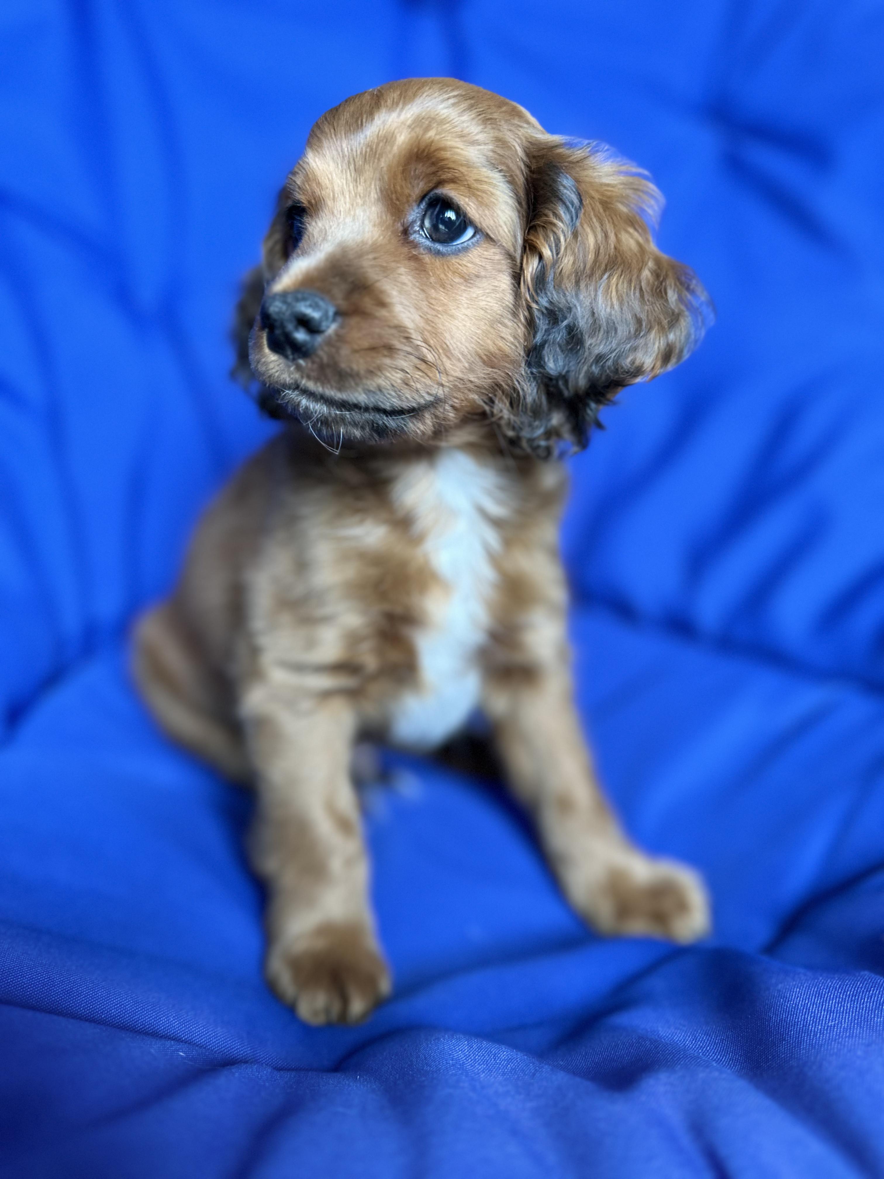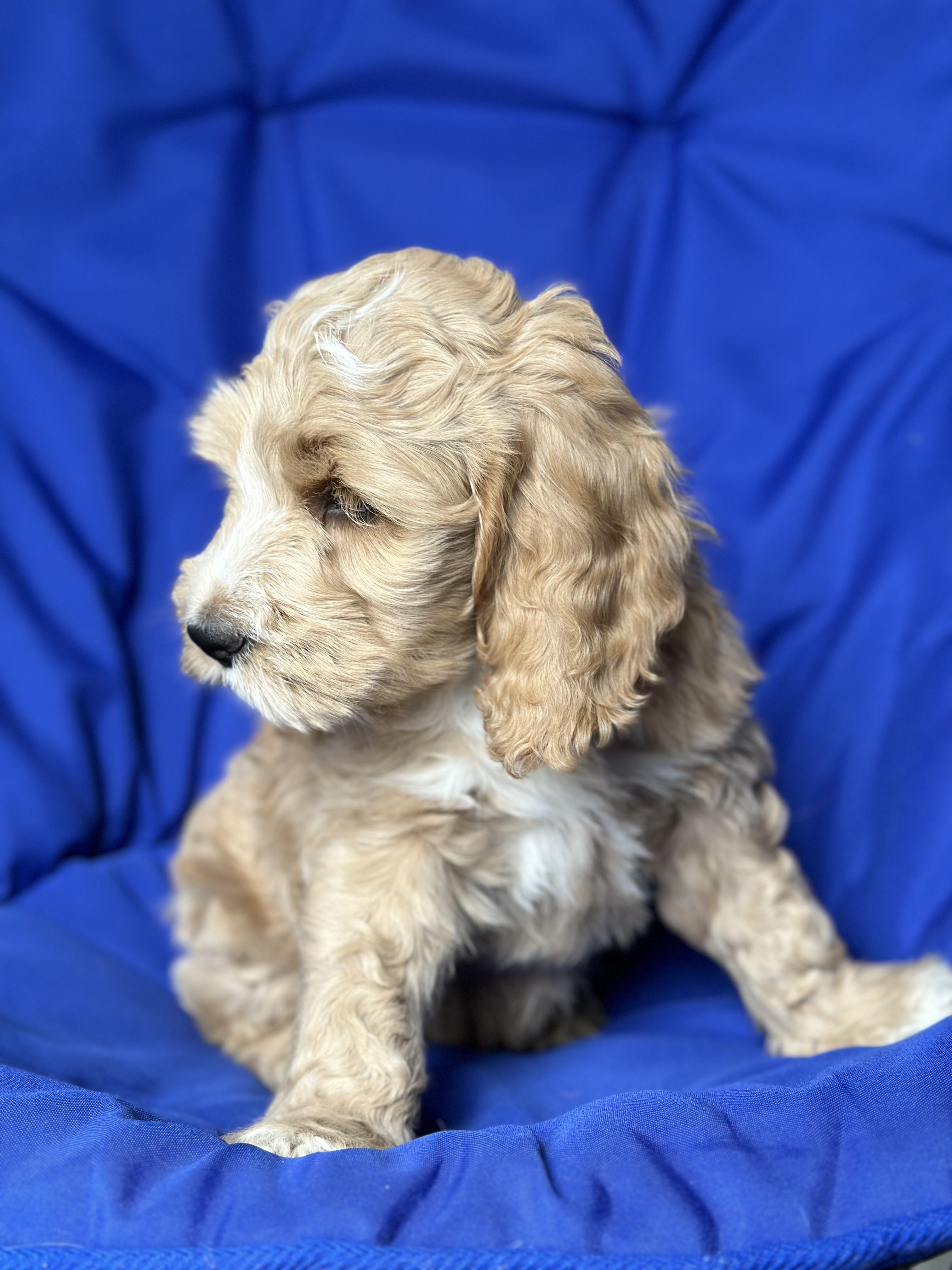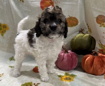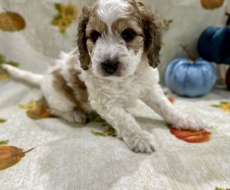 Our Goldendoodle puppies include cream, apricot, red, black, phantom, merle, and parti. Cockapoo puppies include merle, brown white and tan, black and tan, buff and white, sable, brown roan, black and white, sable and white, golden, and black white and tan. Colors will vary depending on the parent dogs.
