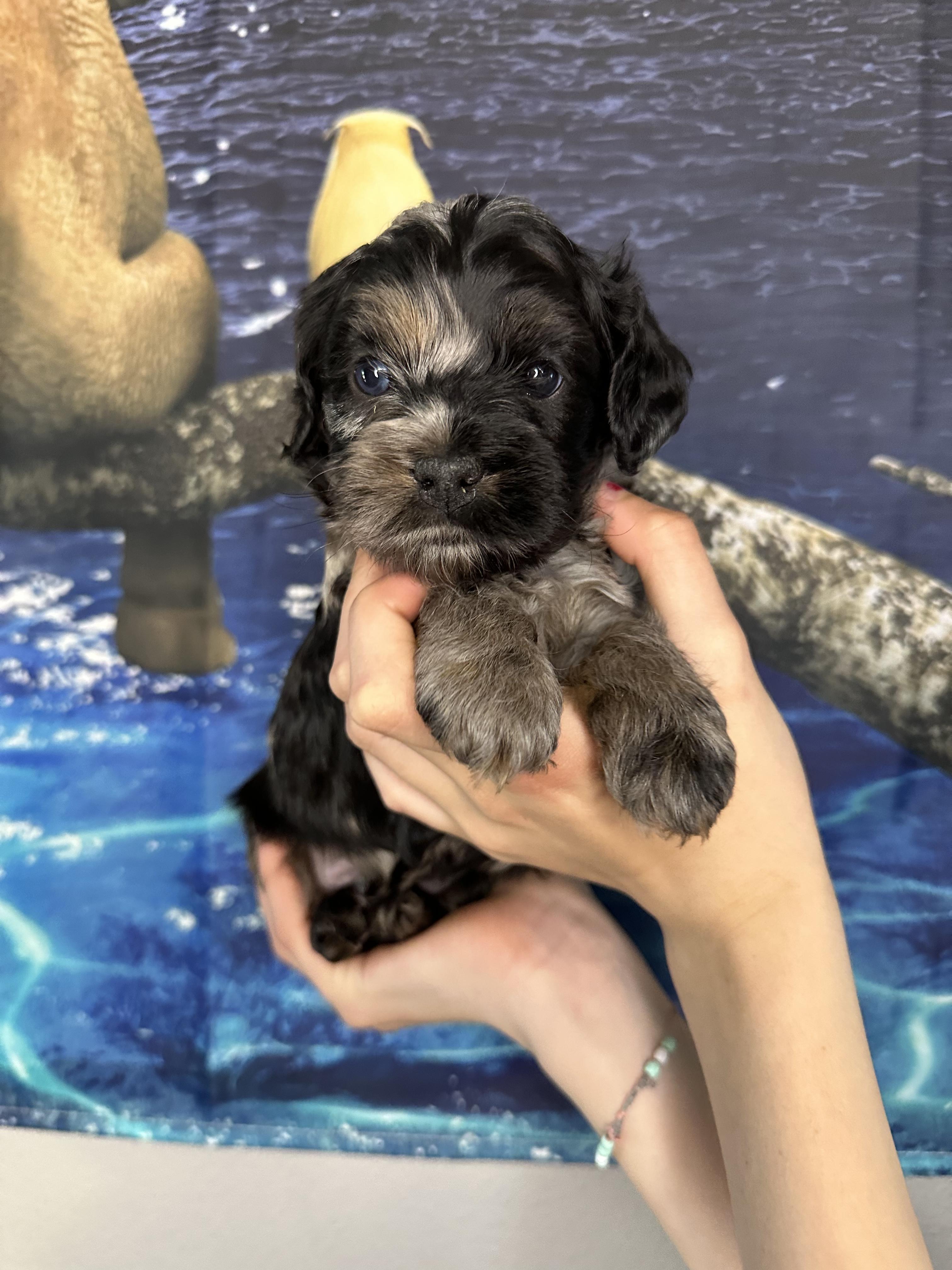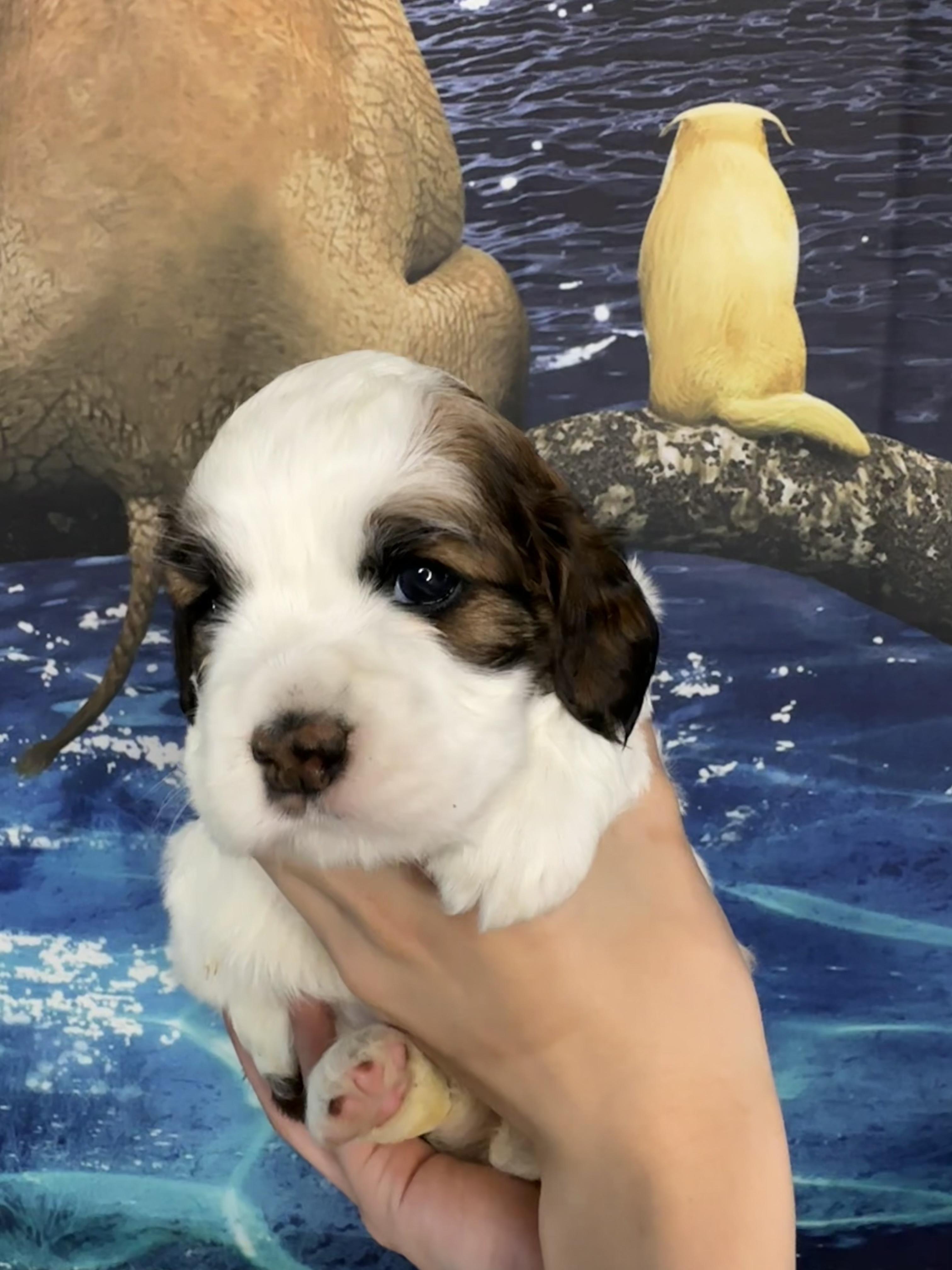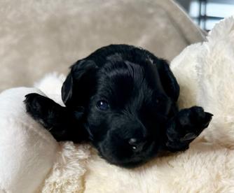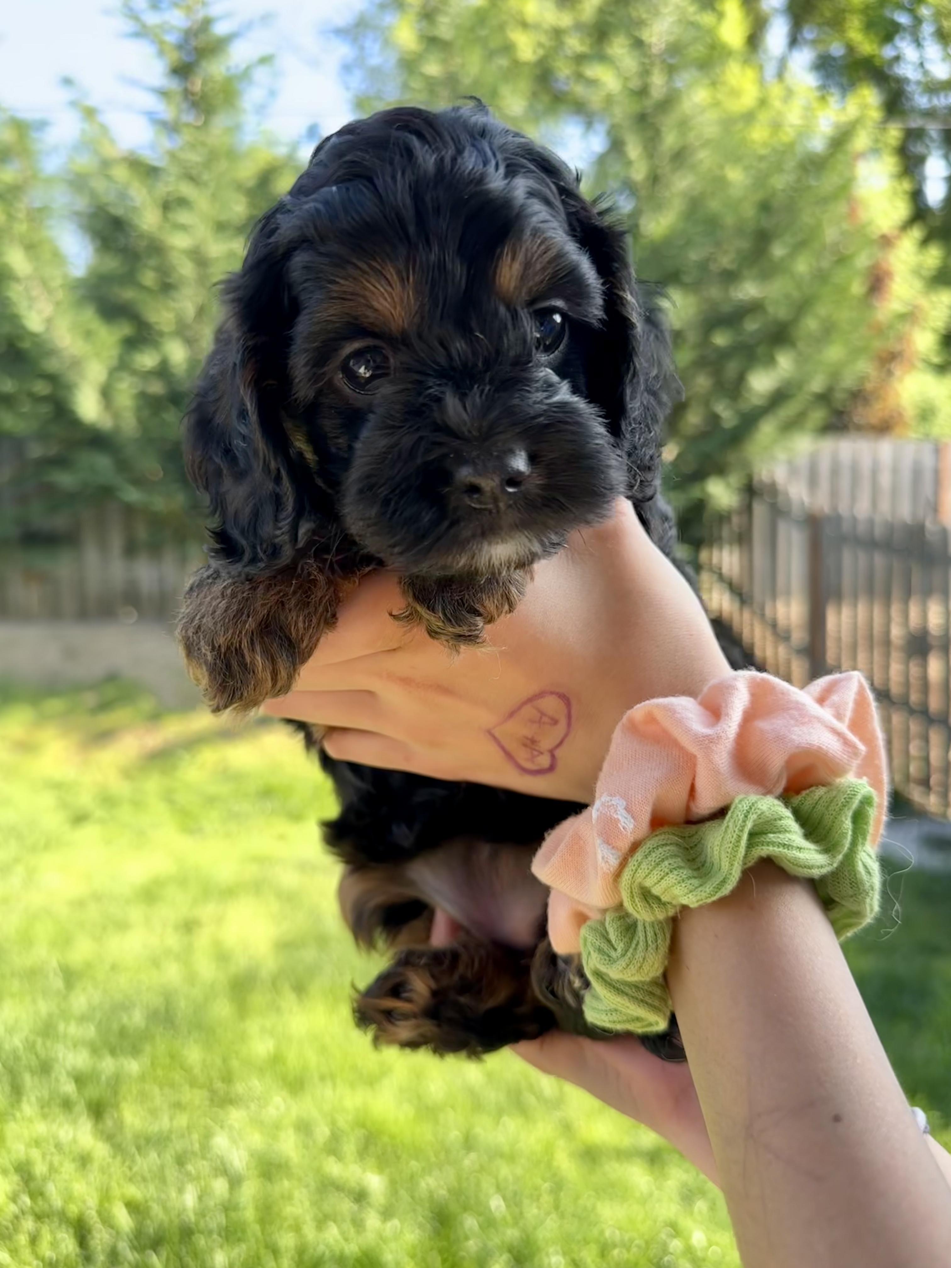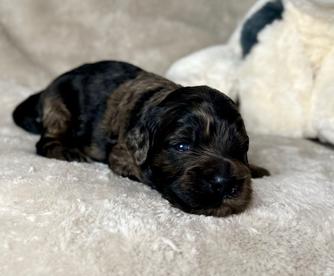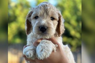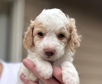 Our Cockapoo puppies include merle, brown white and tan, black and tan, buff and white, sable, brown roan, black and white, sable and white, golden, and black white and tan. Goldendoodle puppies include cream, apricot, red, black, phantom, merle, and parti. Colors will vary depending on the parent dogs.
