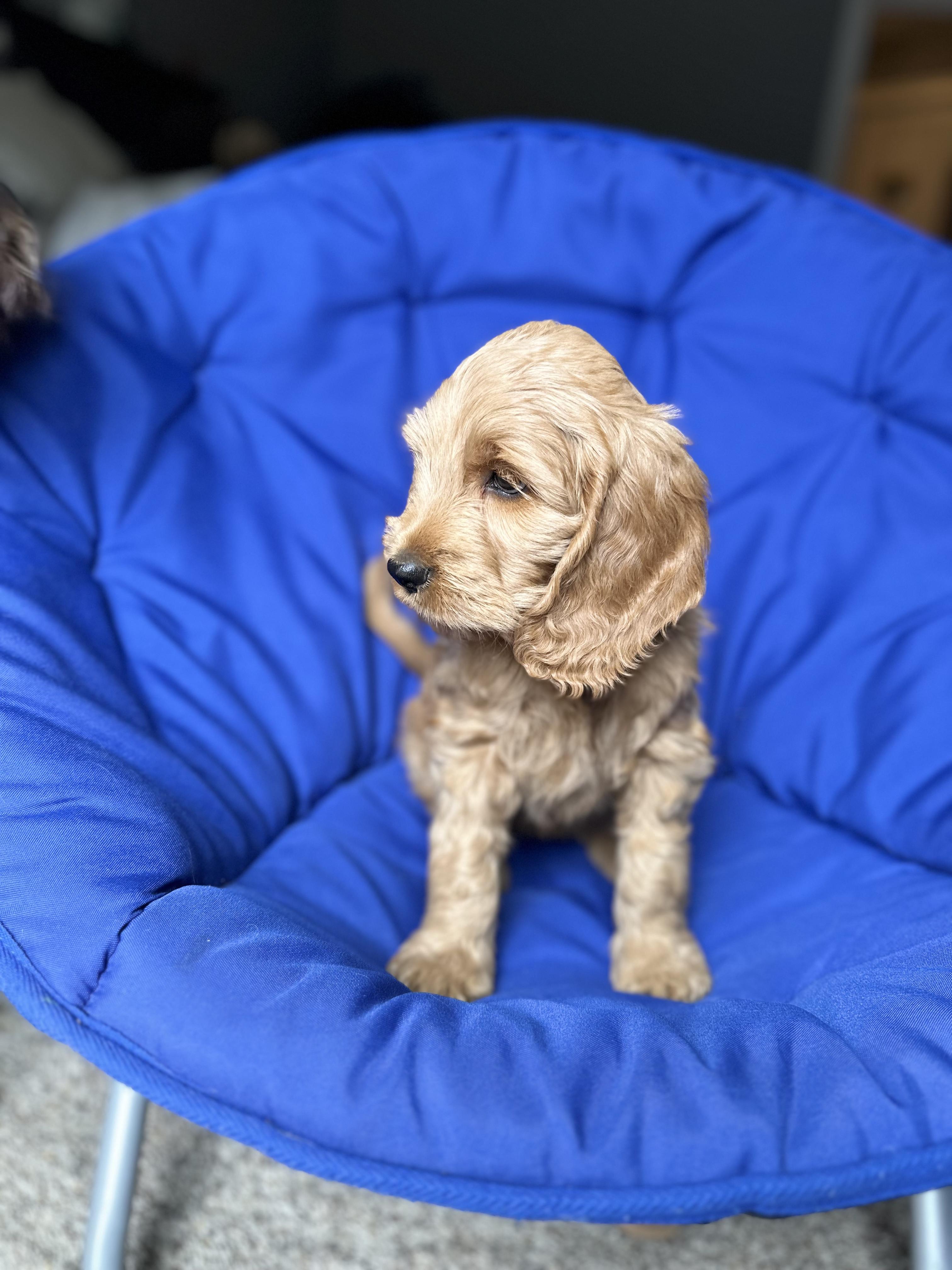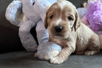 Penelope is a female Cockapoo. Carefully selected as a great representative of her breed, Rebecca decided to make her part of their program. Rebecca has passed Good Dog’s screening process, which involved a review of their breeding practices, environment, and the mental and physical health of their dogs.
