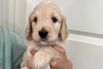 Snowy is a female Cockapoo. Carefully selected as a great representative of her breed, Rebecca decided to make her part of their program. Rebecca has passed Good Dog’s screening process, which involved a review of their breeding practices, environment, and the mental and physical health of their dogs.