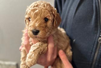 Our Cockapoo puppies include tiny and mini sizes. Goldendoodle puppies include petite, medium, and standard sizes. Sizes will vary depending on the parent dogs.