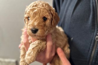 Our Goldendoodle puppies include petite, medium, and standard sizes. Cockapoo puppies include tiny and mini sizes. Sizes will vary depending on the parent dogs.