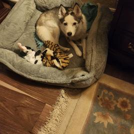 Raven is a female Pomsky. Carefully selected as a great representative of her breed, Donna decided to make her part of their program. Donna has passed Good Dog’s screening process, which involved a review of their breeding practices, environment, and the mental and physical health of their dogs.