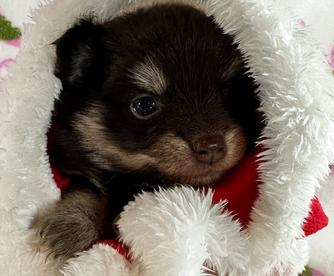 Yogi is a 5 pound pom. I am using him as the stud to help size down the pomsky pups. But also breeding him to my Pomeranian female. He is very affectionate and cuddly. His fur is not as dense as typical Poms rather is long and silky with less dense undercoat.