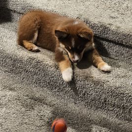 Our puppies include red & white, black & white, blue merle, black tri, red tri, red merle, red, and black. Colors will vary depending on the parent dogs.