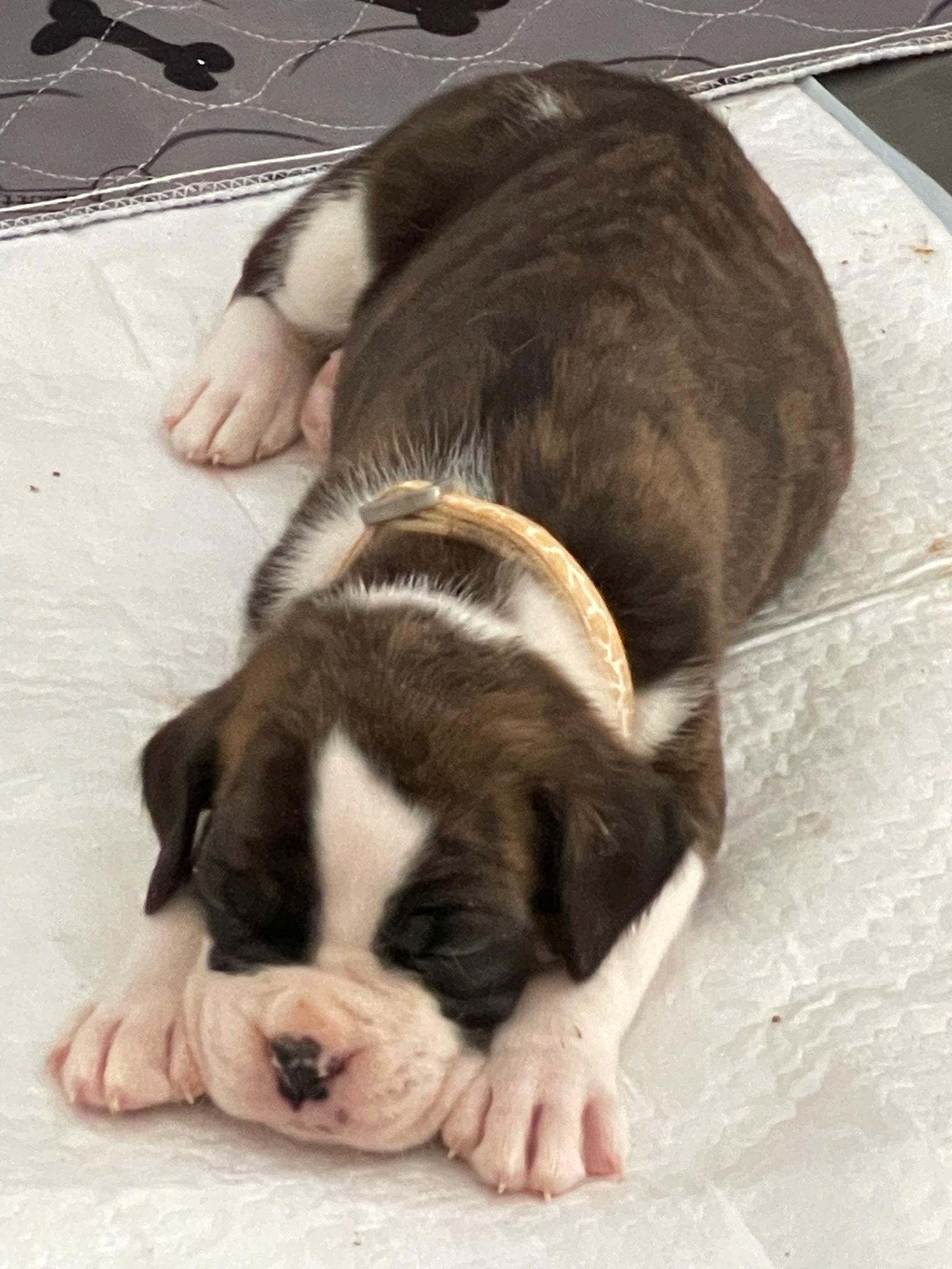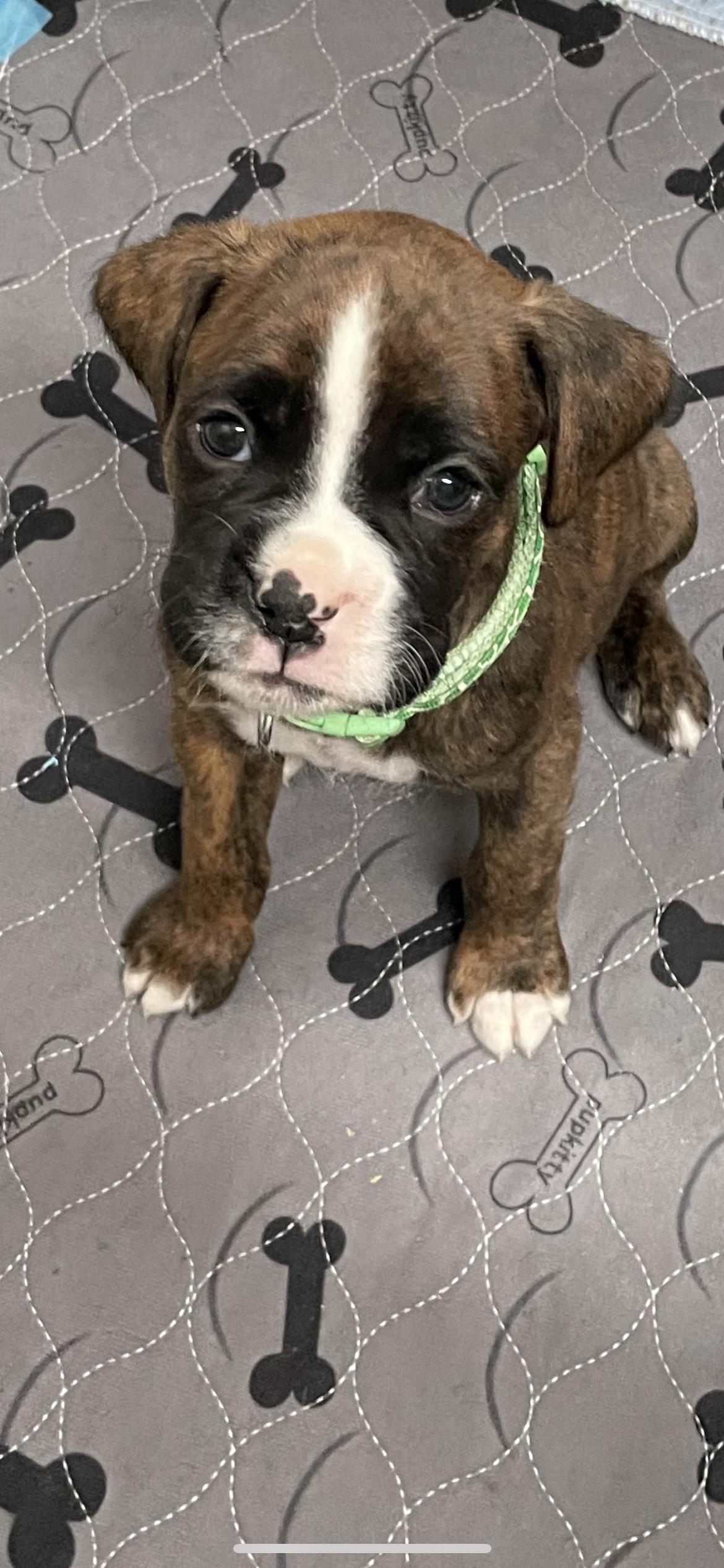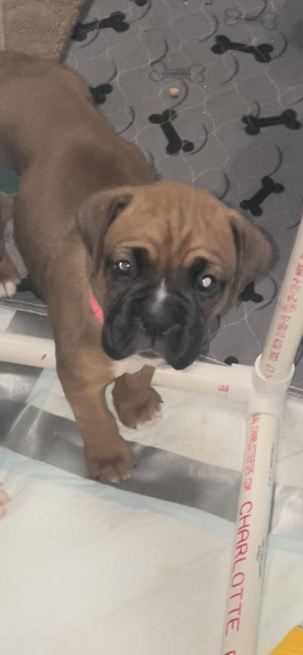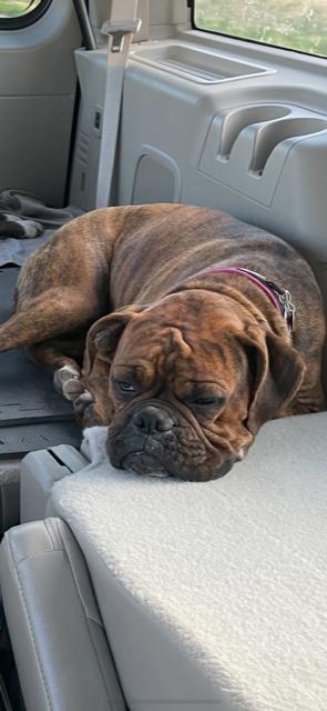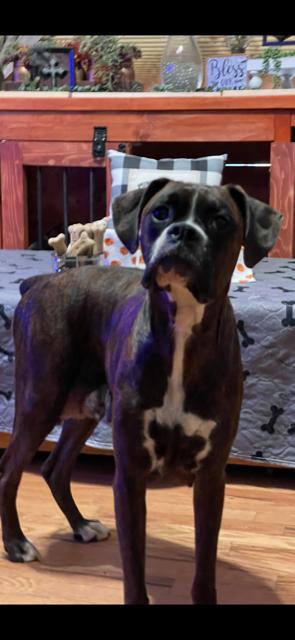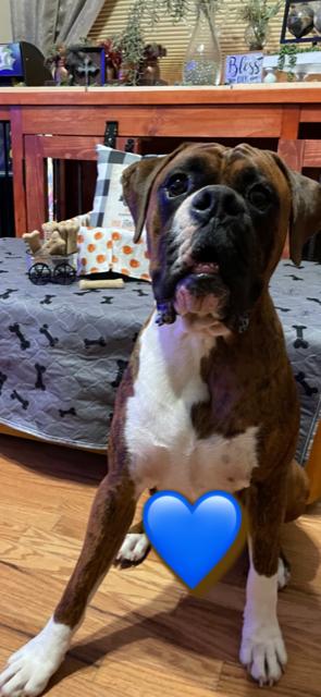 Lola is a female Boxer. Carefully selected as a great representative of her breed, Kristy decided to make her part of their program. Kristy has passed Good Dog’s screening process, which involved a review of their breeding practices, environment, and the mental and physical health of their dogs.