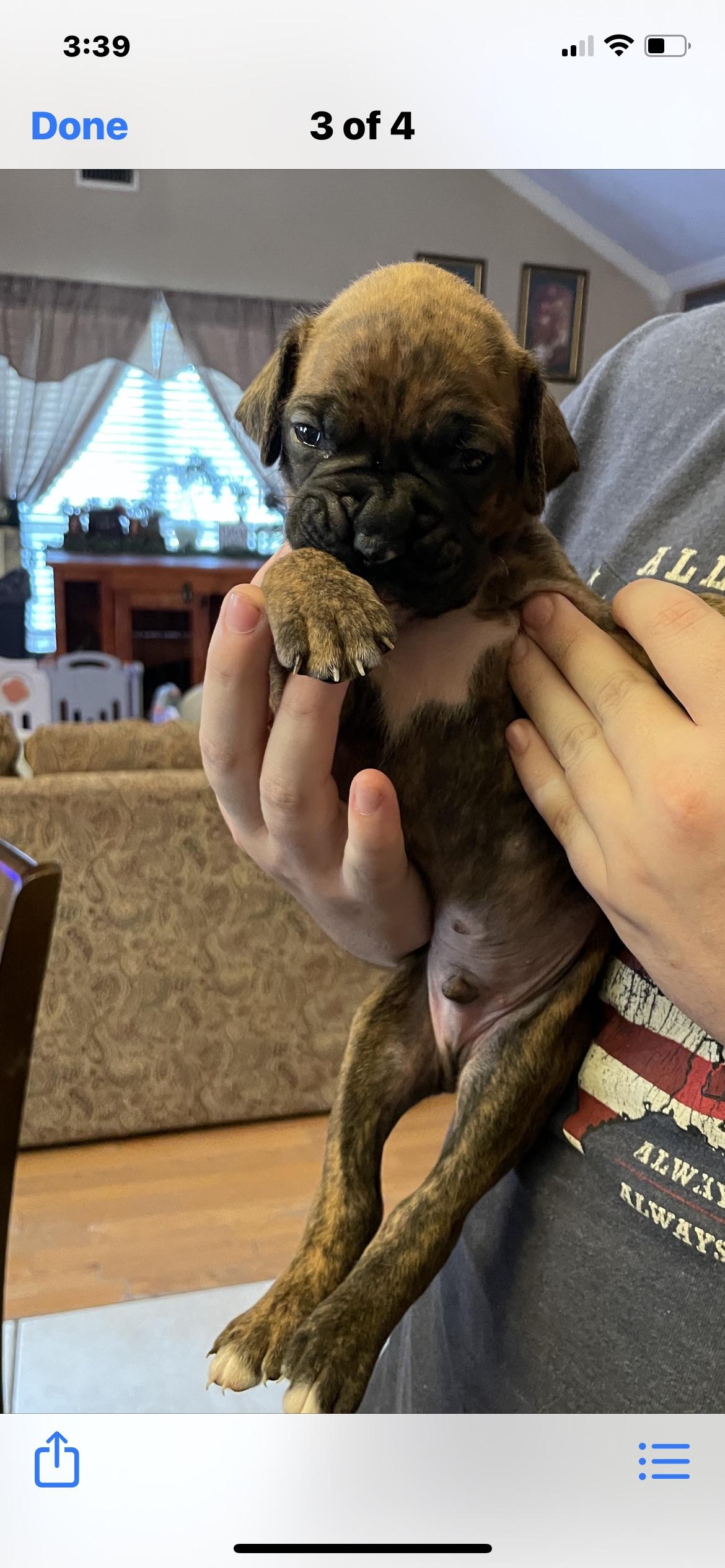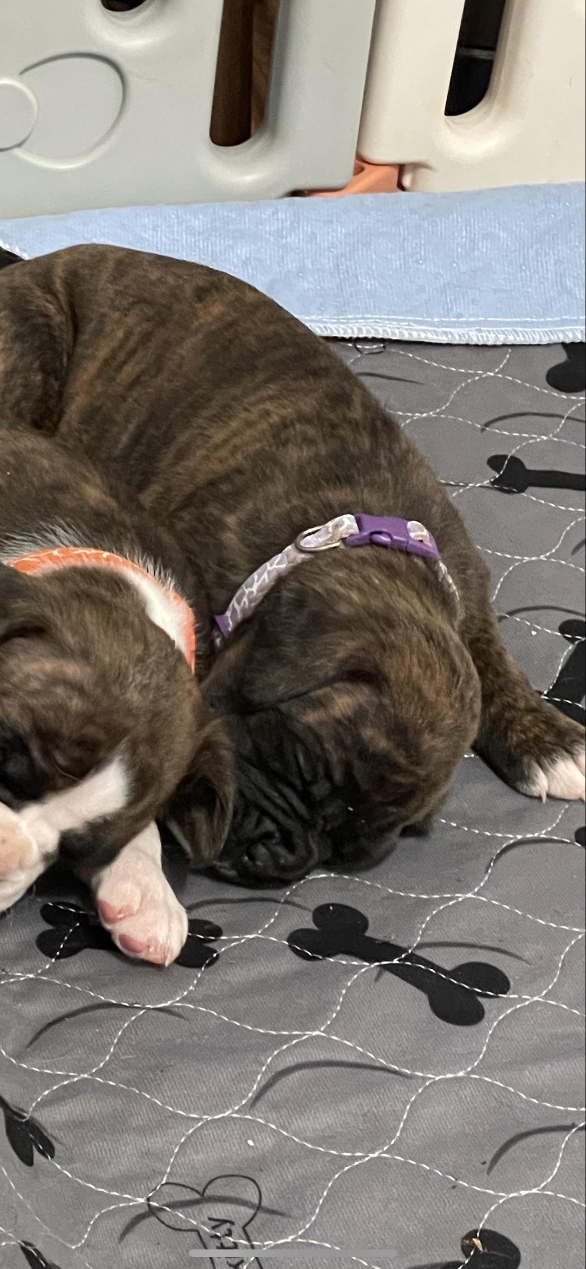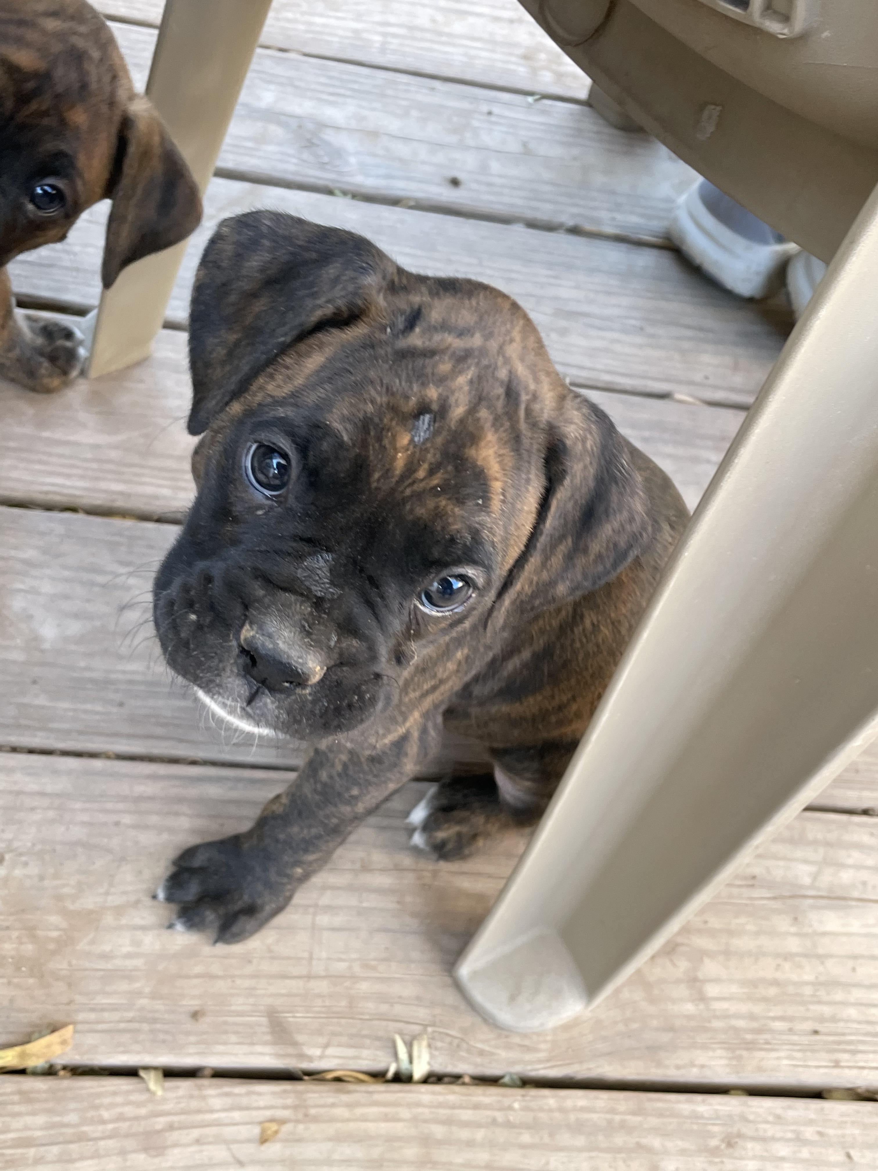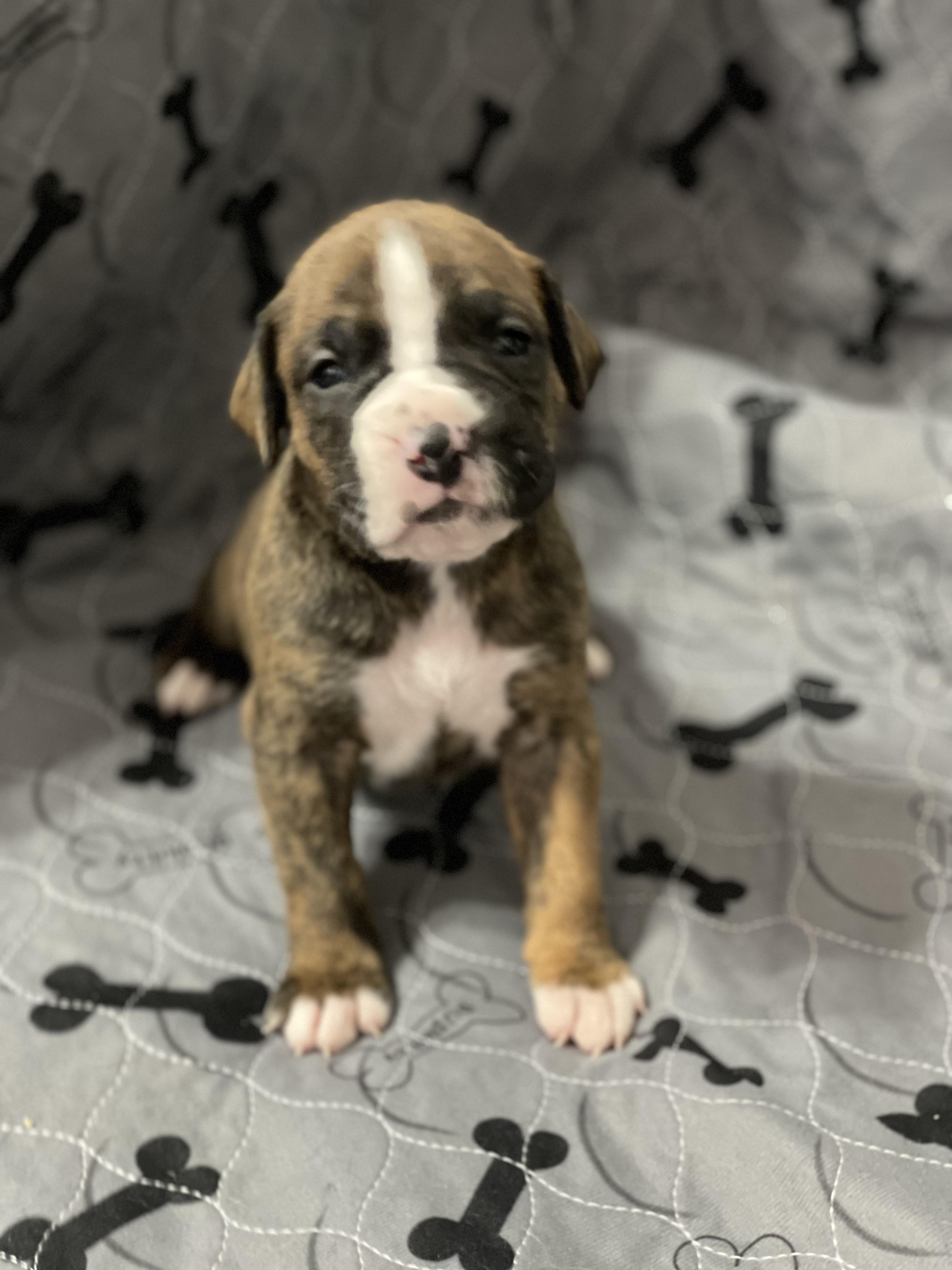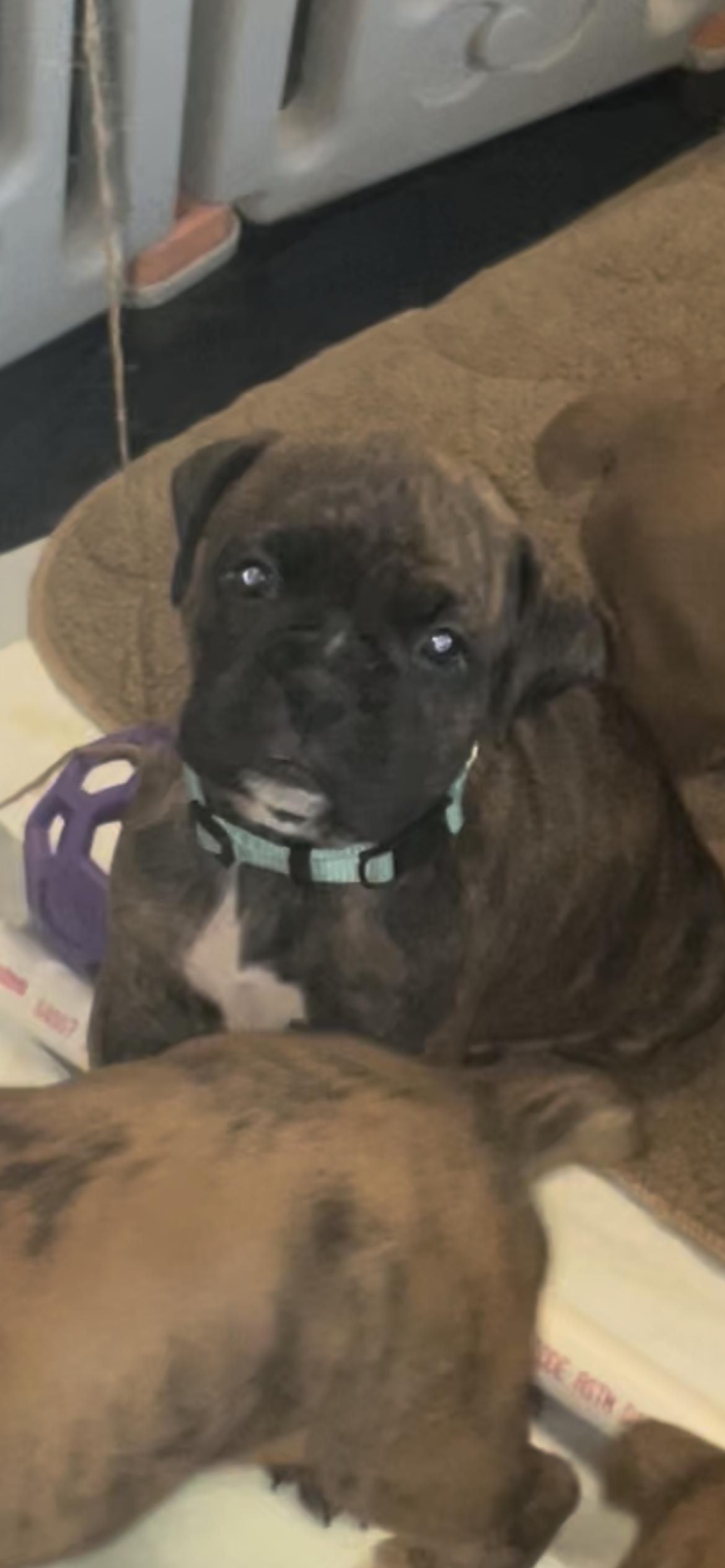 Our puppies are brindle. Colors will vary depending on the parent dogs.