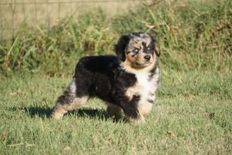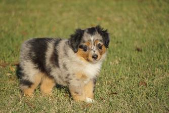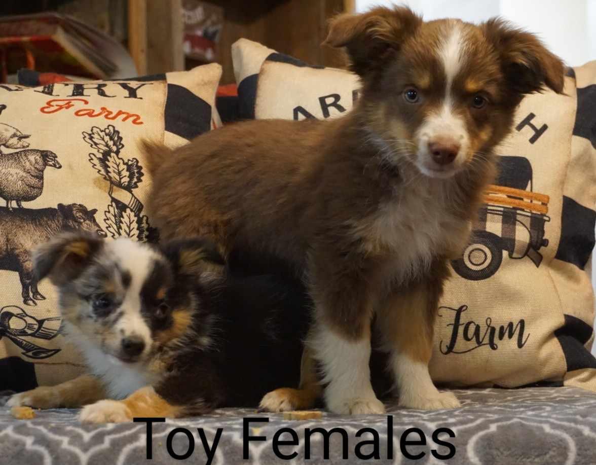 Our Toy Australian Shepherd puppies include black tri, blue merle, red merle, and red tri. Miniature Australian Shepherd puppies include blue merle, black tri, red tri, and red merle. Colors will vary depending on the parent dogs.