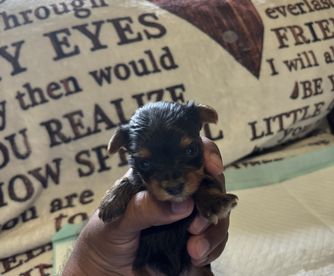 Coco is a tcup 4.lb male yorkies . He is sweet and healthy