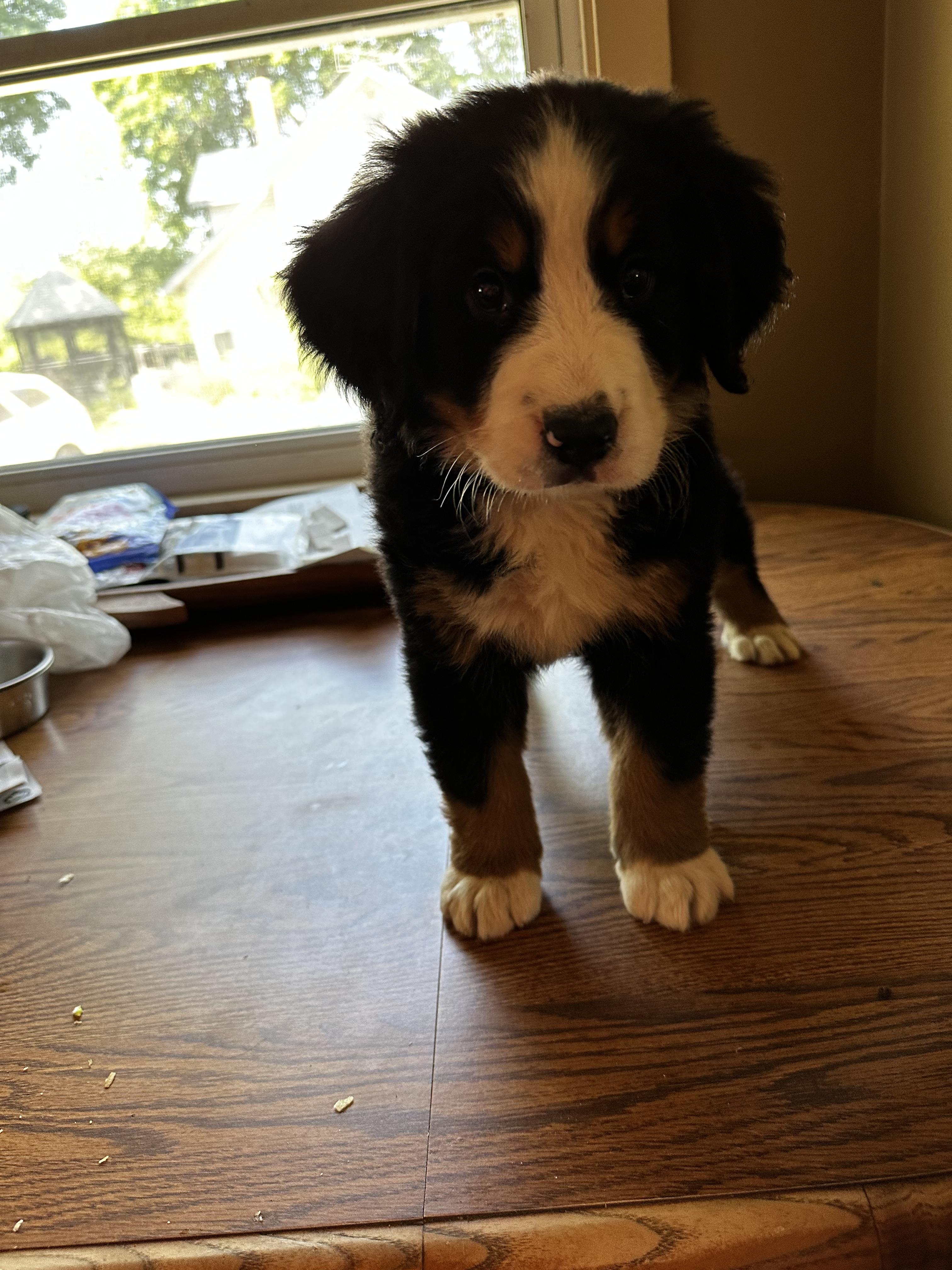 All my Bernese are raised inside my home. The parents are my babies. Puppies are also raised inside. As soon as they’re old enough they get to hang out with the rest of the family. They get used to home life at an early age.
