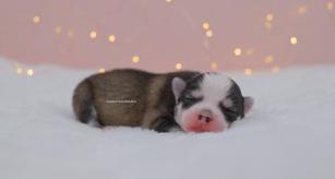 Primrose is a female Pomsky. Carefully selected as a great representative of her breed, Maddie decided to make her part of their program. Maddie has passed Good Dog’s screening process, which involved a review of their breeding practices, environment, and the mental and physical health of their dogs.