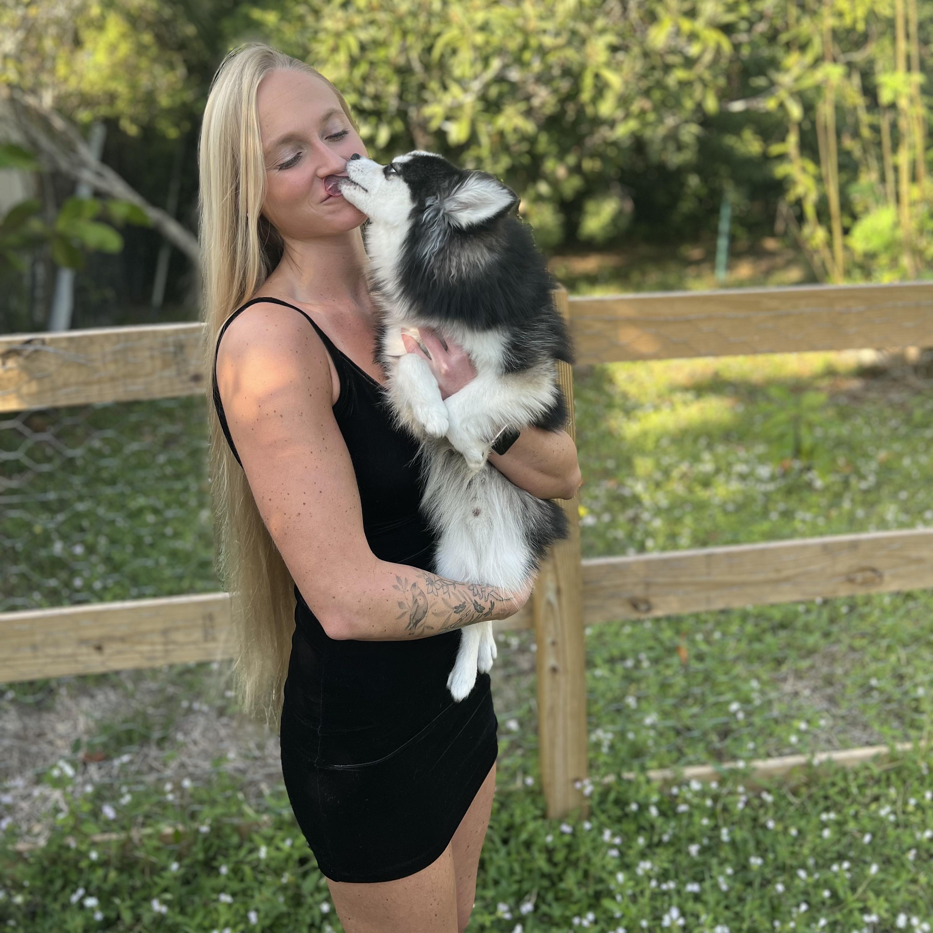 I fell in love with the Pomsky breed the minute I brought my first Pomsky home. From that moment on I began educating myself on responsible breeding and sought guidance from my now mentor, who I am extremely grateful to have by my side. When I met my now husband my passion for dogs was matched and we became a team filled with ambition to build a great breeding program.