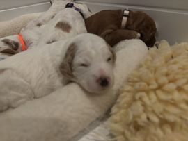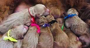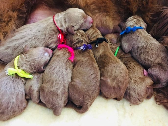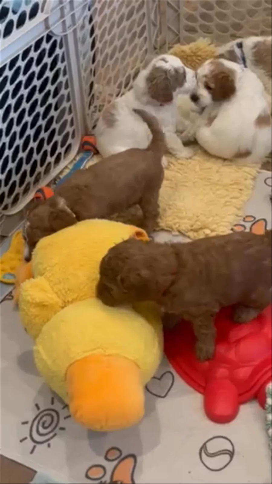 Our puppies include cream, apricot, red, and parti. Colors will vary depending on the parent dogs.