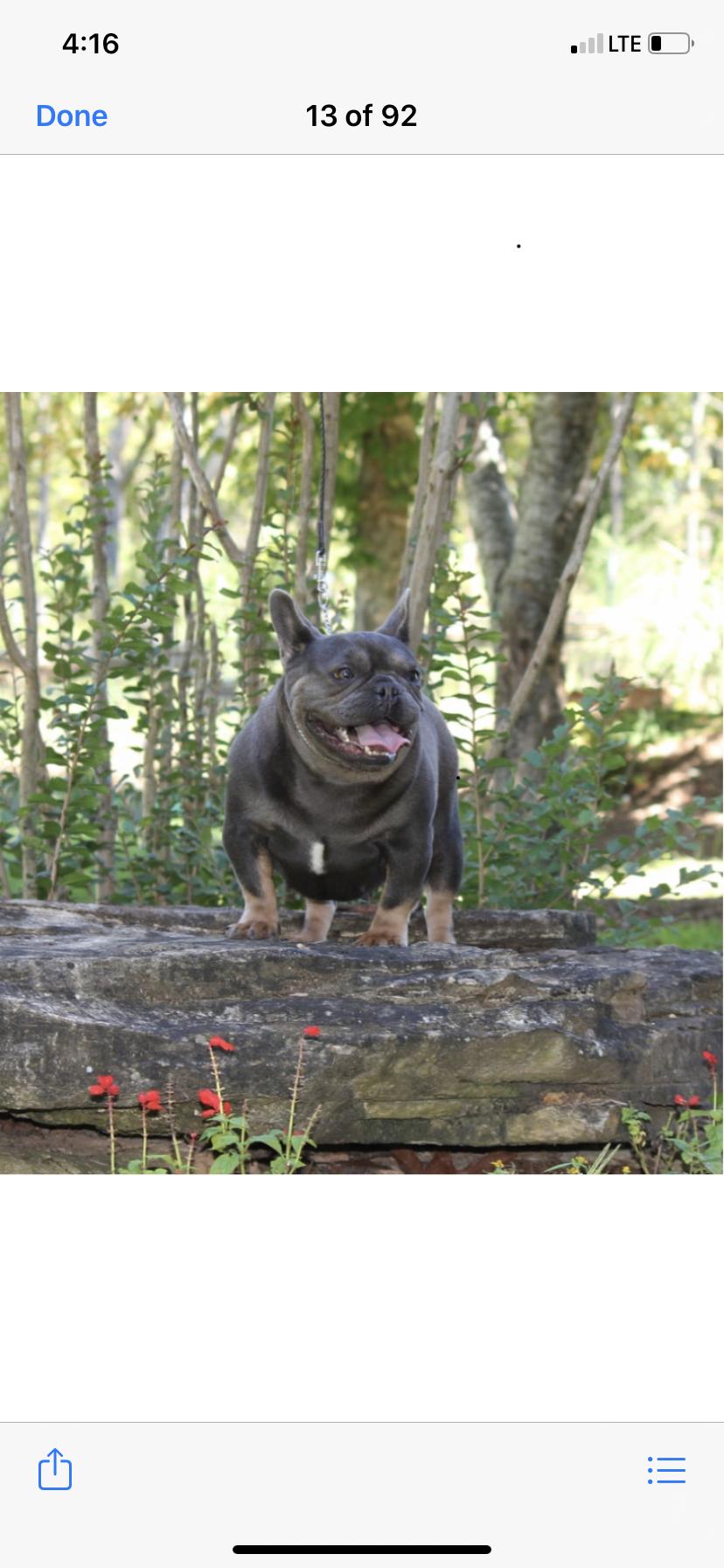 Izzy is a female French Bulldog. Carefully selected as a great representative of her breed, Tammy decided to make her part of their program. Tammy has passed Good Dog’s screening process, which involved a review of their breeding practices, environment, and the mental and physical health of their dogs.