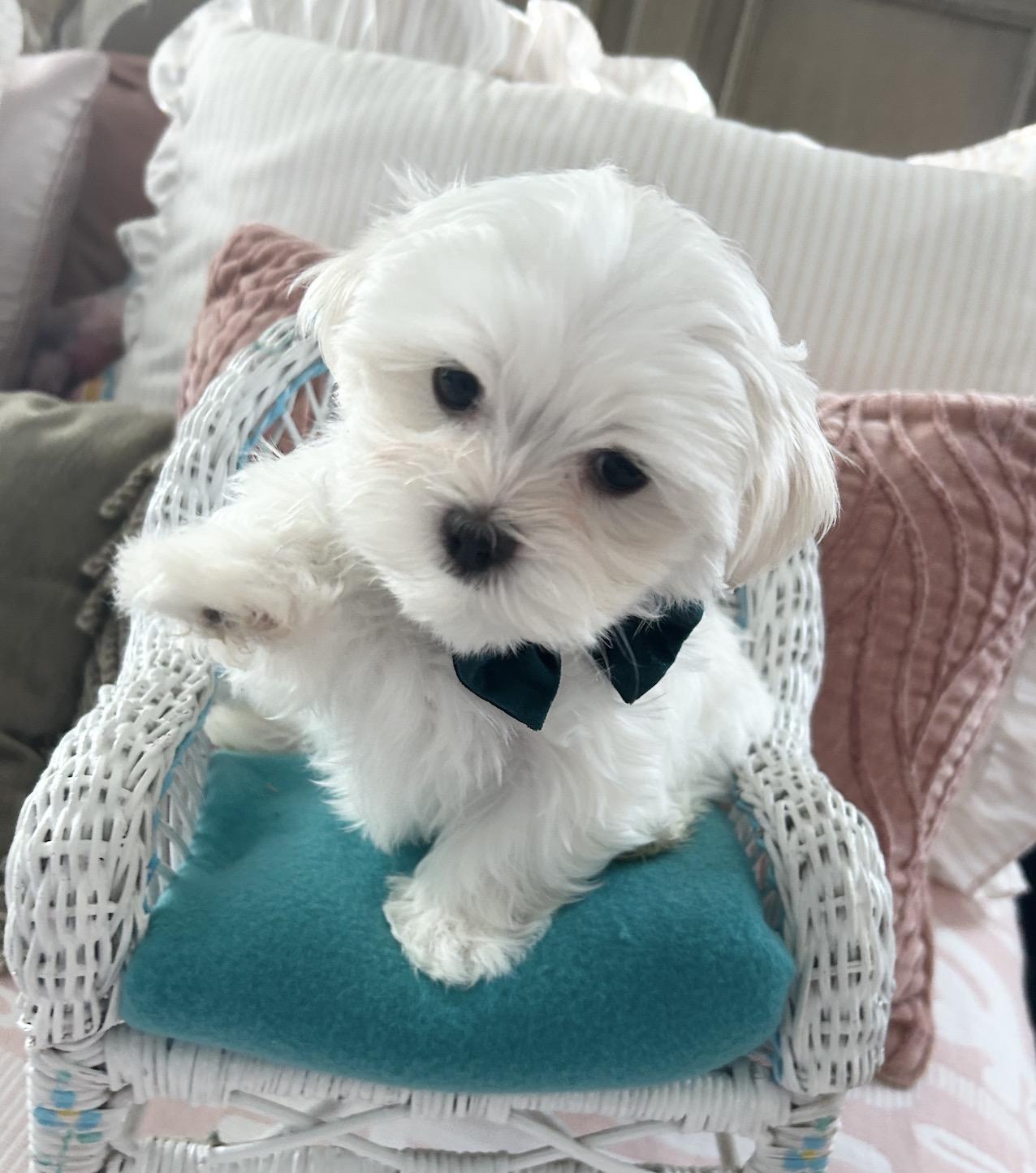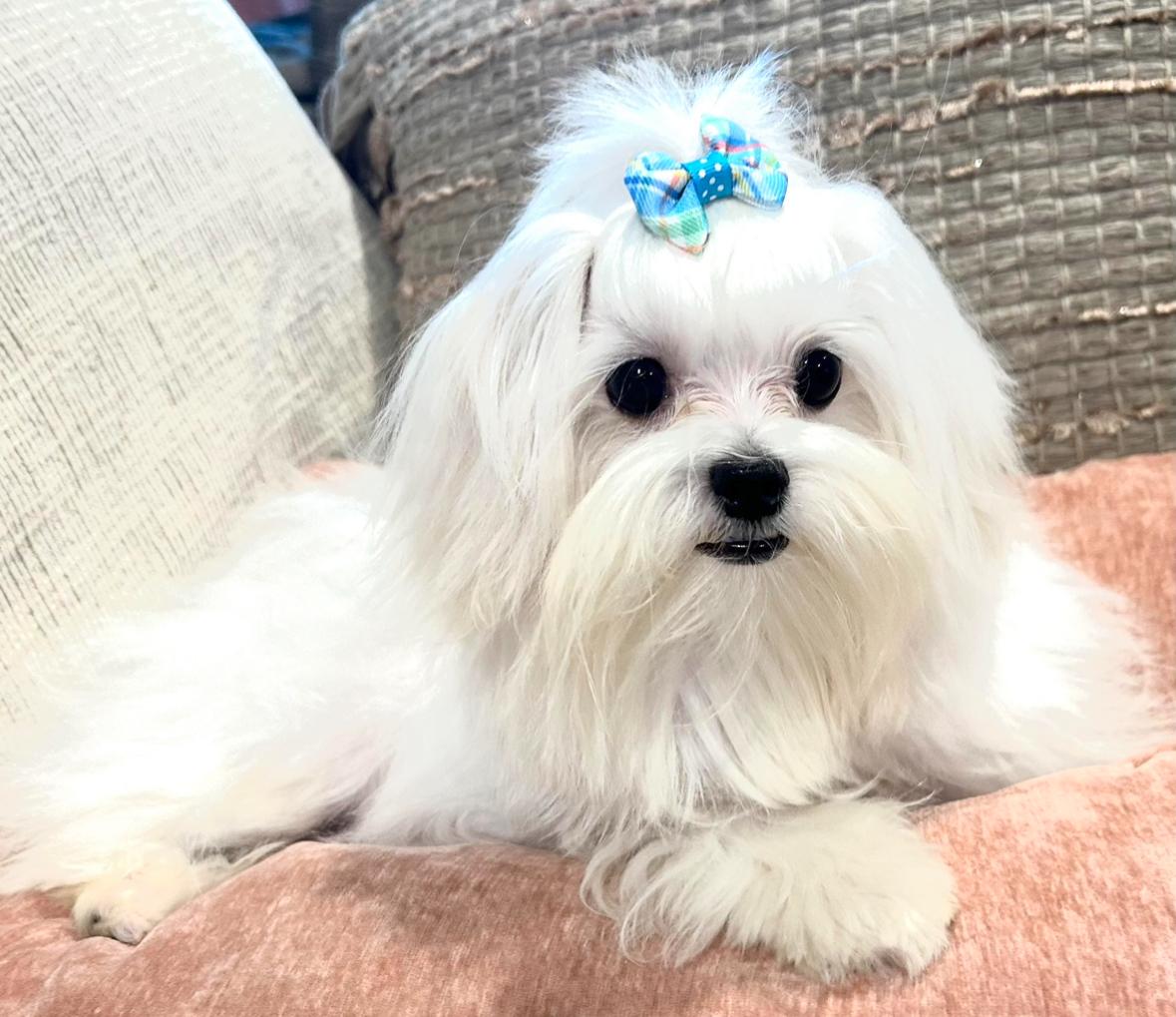 Gigi is a beautiful, happy girl who loves everyone. She has perfect confirmation, a profuse snow-white coat, gorgeous little face and the best personality. She has graduated from obedience class and enjoys being around people and other dogs.