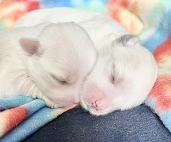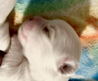 Jaimee is an outgoing, very friendly and lovable little boy. He has been easy to train and loves attention. Gets along great with all other dogs and children also. He has nice square, solid confirmation, an adorable baby-doll face and a profuse silky, white coat.