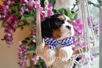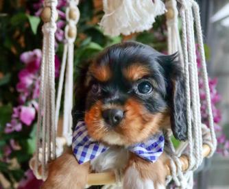 Our puppies include blenheim, ruby, tri-color, and black and tan. Colors will vary depending on the parent dogs.