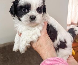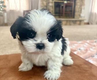 Our Shih Tzu puppies include tricolor and black and white. German Shepherd puppies include sable, black, and black and tan. Colors will vary depending on the parent dogs.