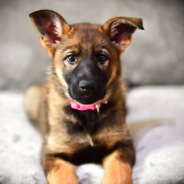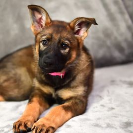 German Shepherd puppies have stock coats. Coat types may vary depending on the parent dogs.