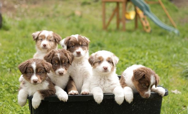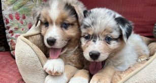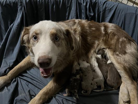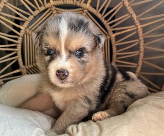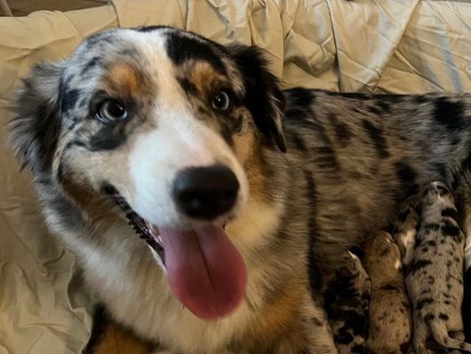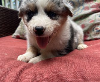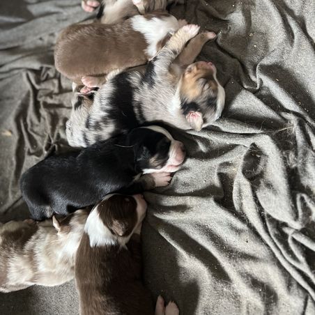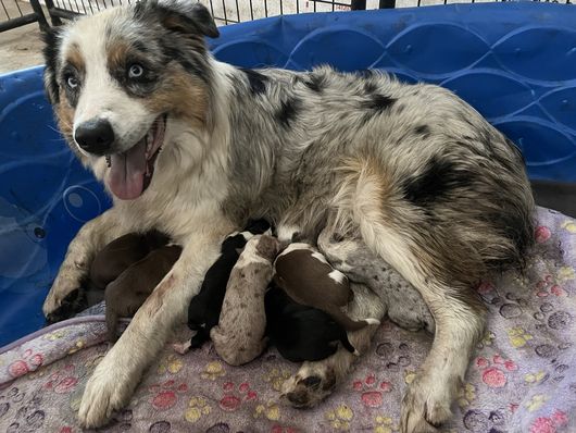 Our puppies include red merle, blue merle, black tri-color, and red tri-color. Colors will vary depending on the parent dogs.