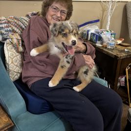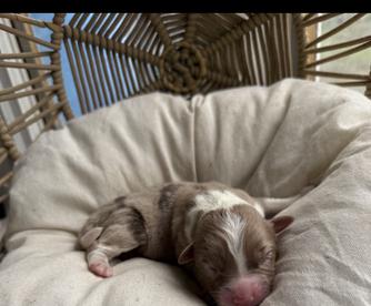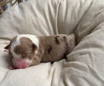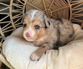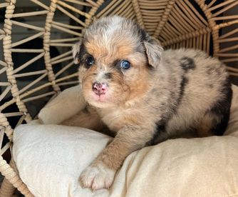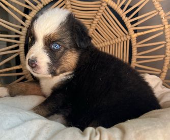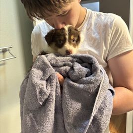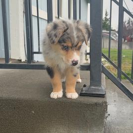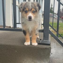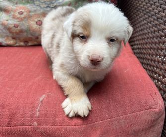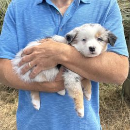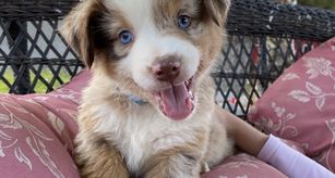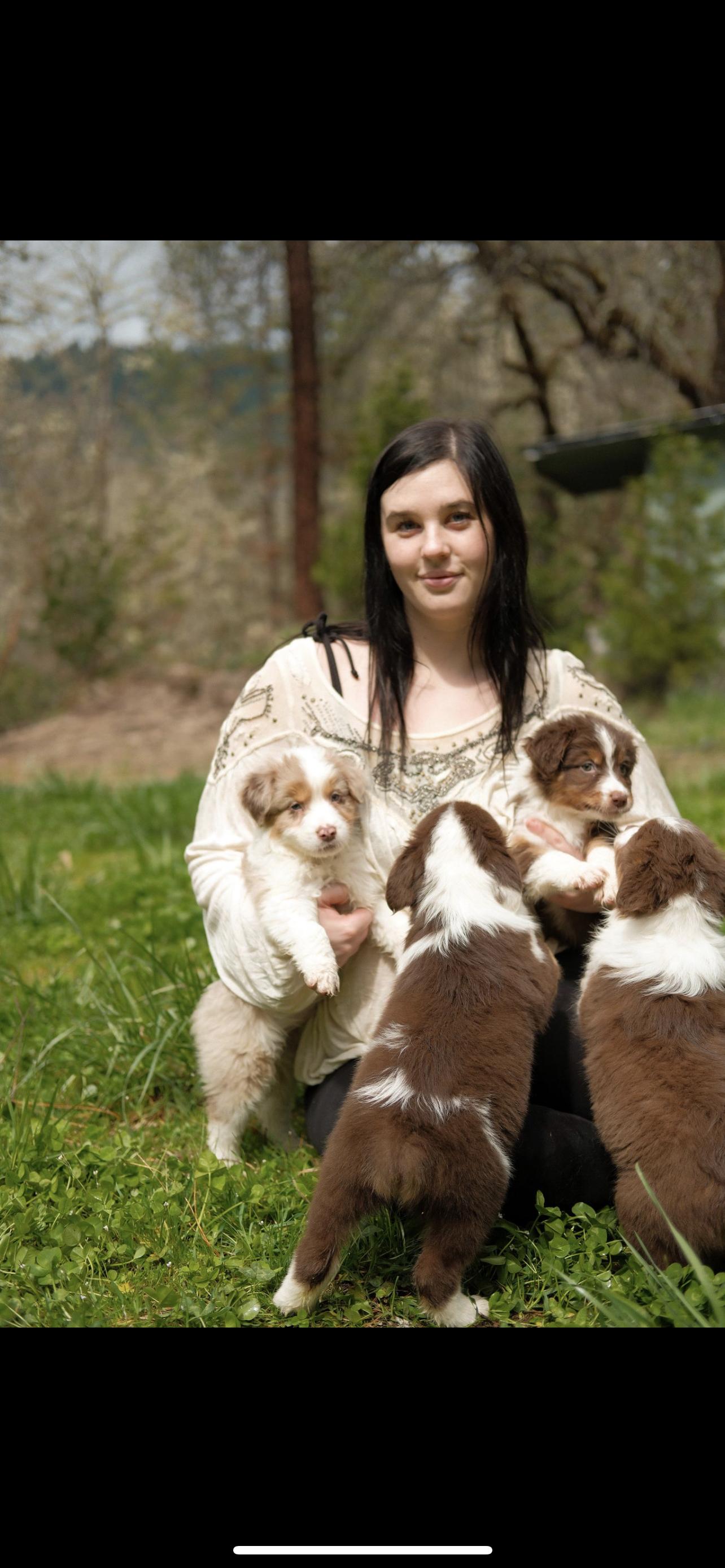 I'm Casey H., the breeder behind Carmel Mountain Aussies located in Grants Pass, OR. Puppies are given shots and dewormed before they go home at 8 weeks! They are AKC registered! They are exposed to many breeds and sizes of dogs as well as cats and children! They also start working on potty training at a young age and are on a great track with that before going home!