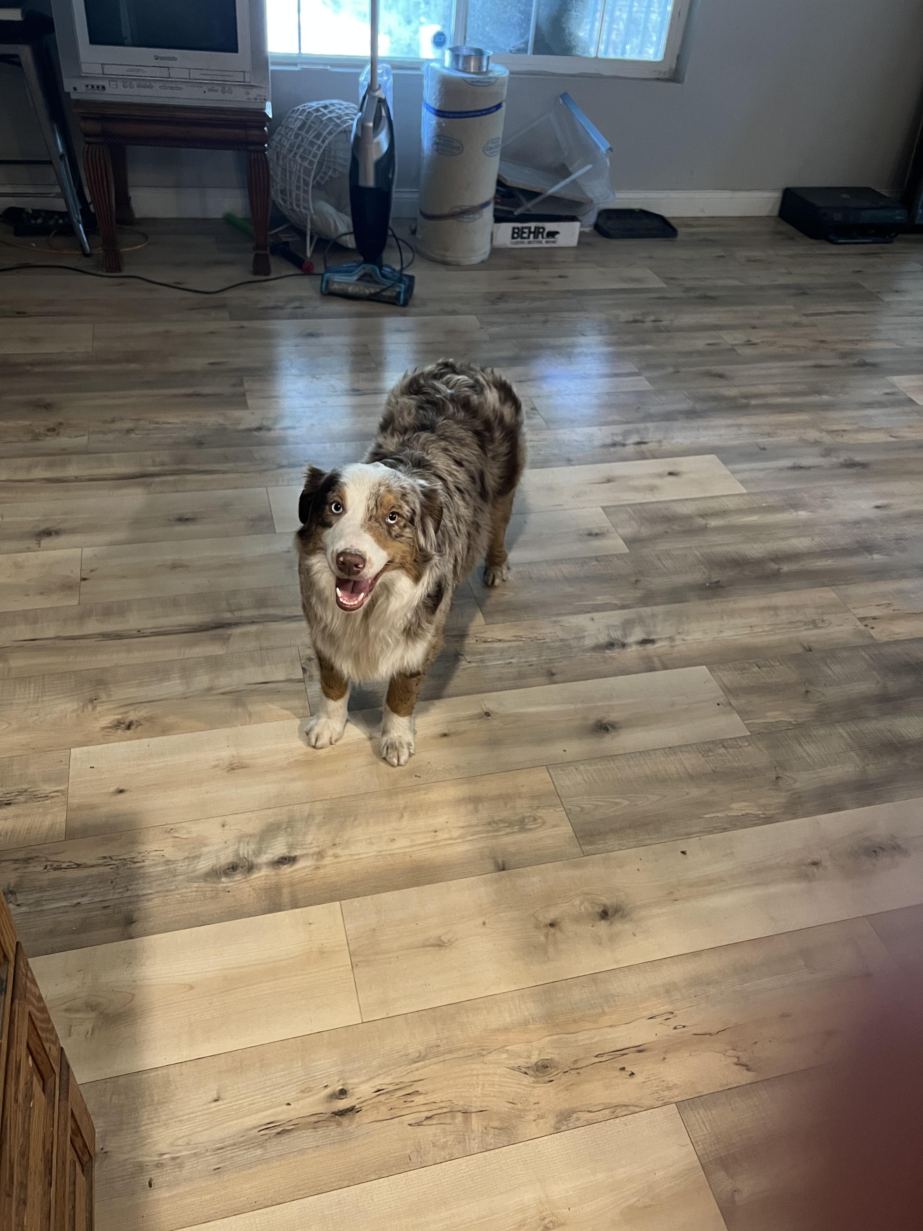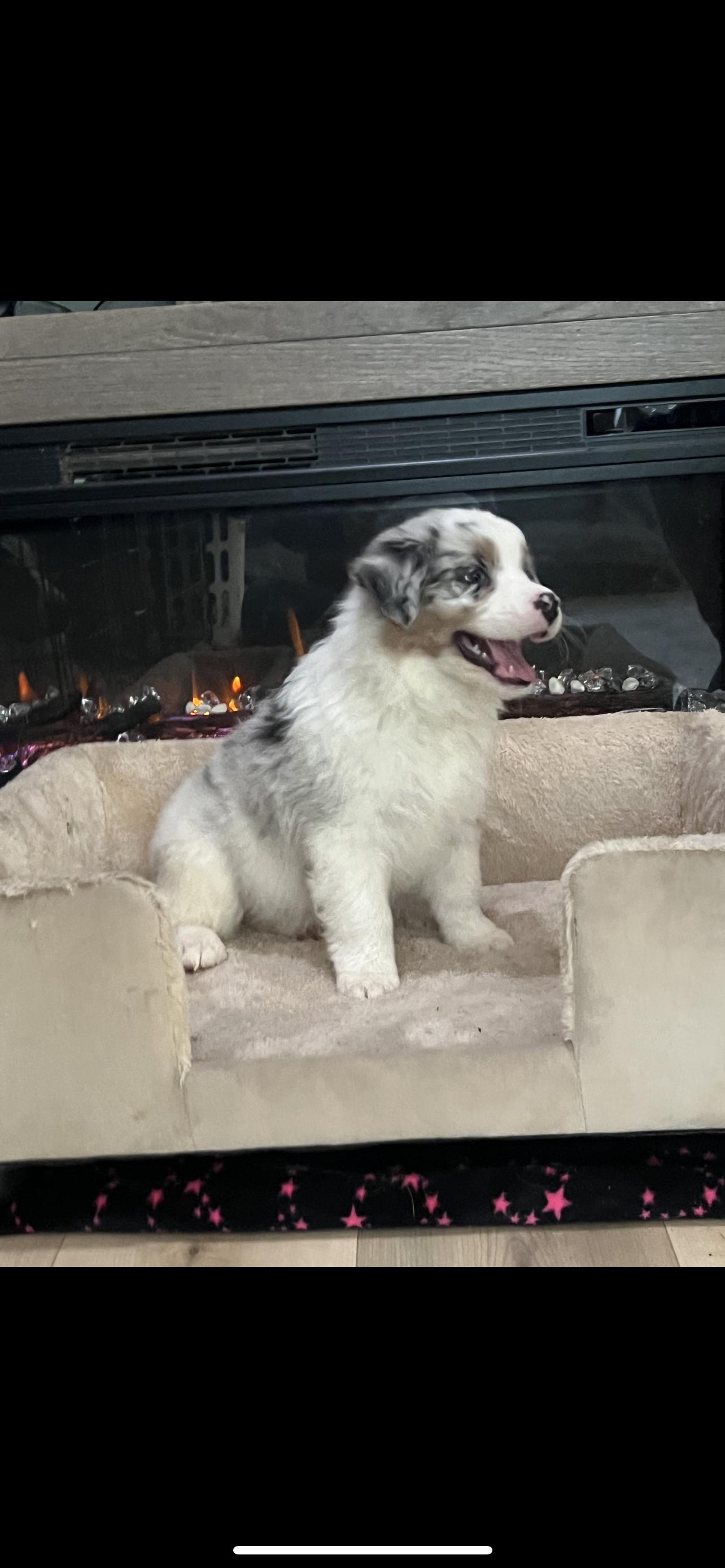 I fell in love with the Aussie breed when I saw the most beautiful Blue Merle service dog one time at an event! I couldn’t help but stop and stare at how beautiful and sweet the dog was, from that moment on I knew my first dog ever had to be an Aussie! Many years later I got my first farm house on 4 beautiful acres! I knew it was time to finally get my dream dog and from there is history!