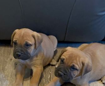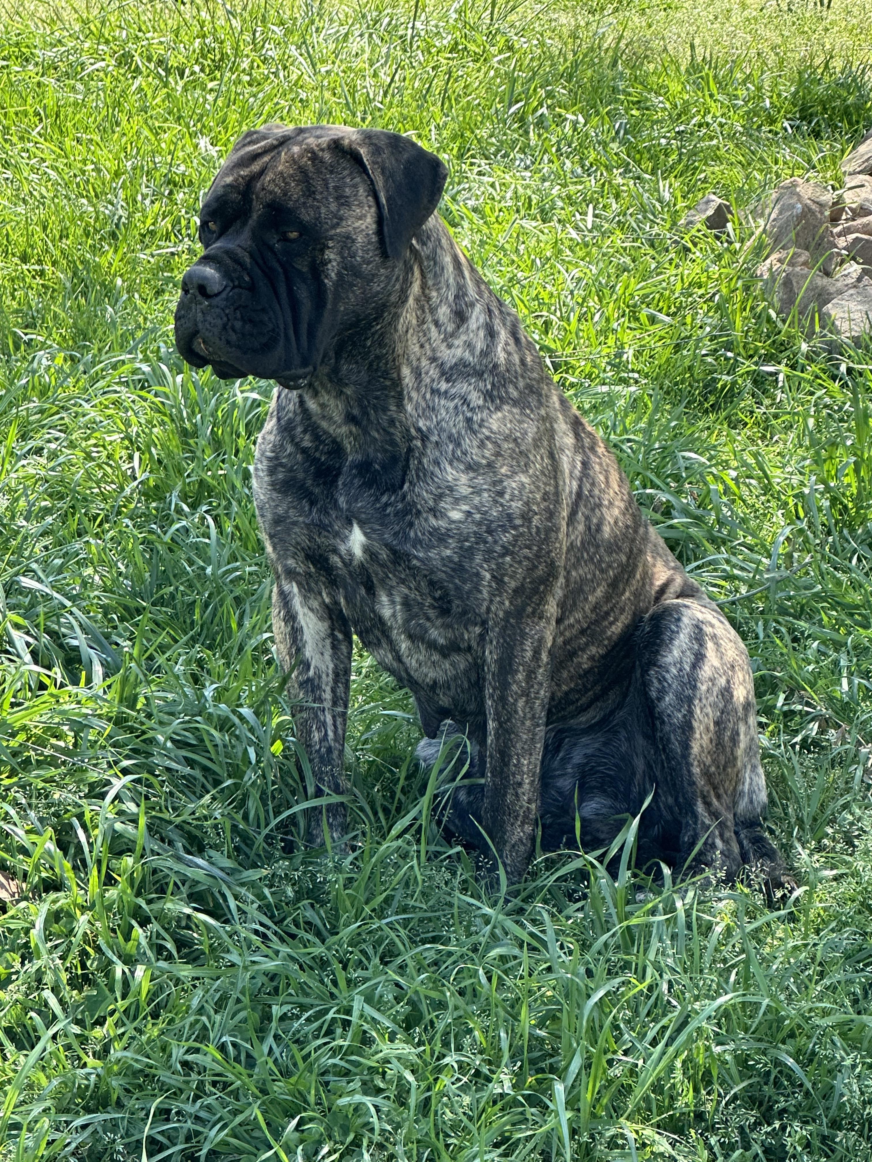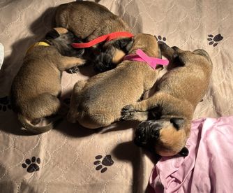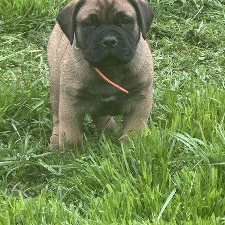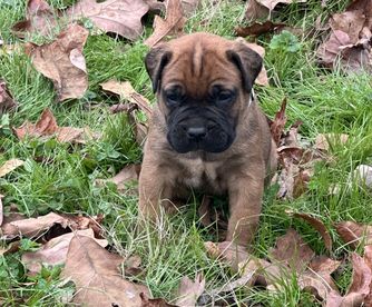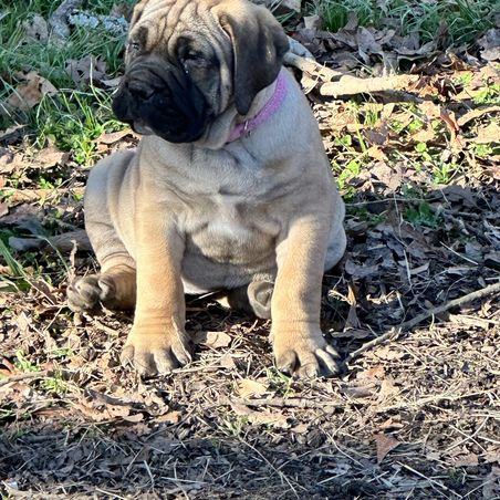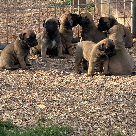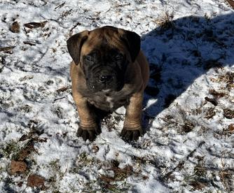 I'm Ferron C., the breeder behind Caro Bullmastiffs located in Comer, GA. Pups come with a puppy starter kit which includes their health records, sales agreement/contract, microchip, documentation of vet exam, collar, leash, scent toy and blanket. Puppies are doggie door trained and have started with crate training. Puppies are sold with Limited registration only.