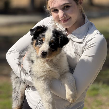 We got our first Aussie (Lola) for my youngest daughter in 2017 and fell in love with her. I decided to get a male for my other daughter and then I had to have one also. We experienced the love and healing these dogs carry and came up on the opportunity to breed for additional income. We since have grown to 4 females and "Z" , our stud dog. It's fulfilling to place these beautiful, smart puppies with the right families and share the joy of these great family dogs.