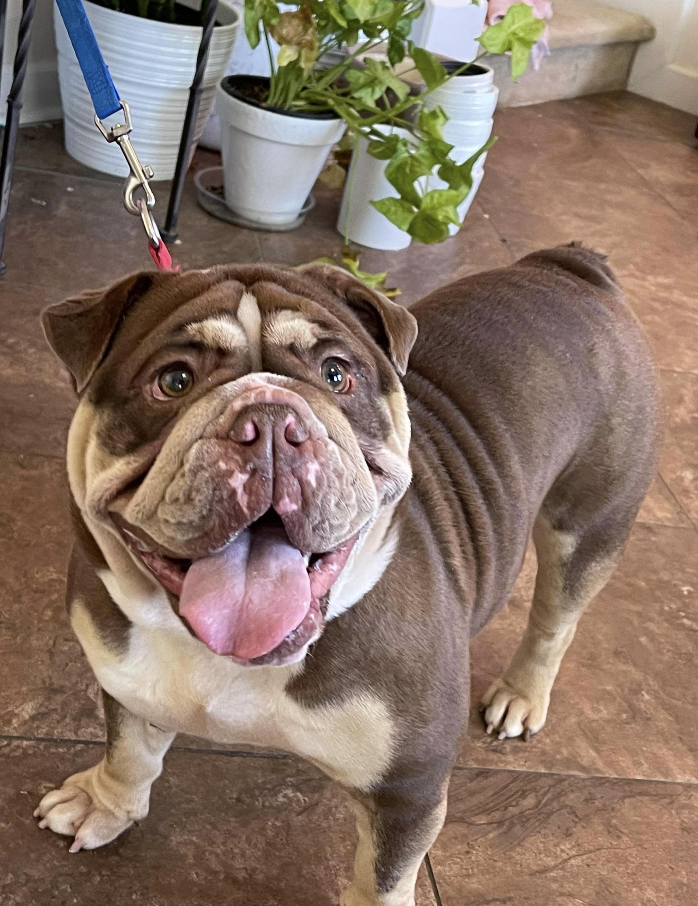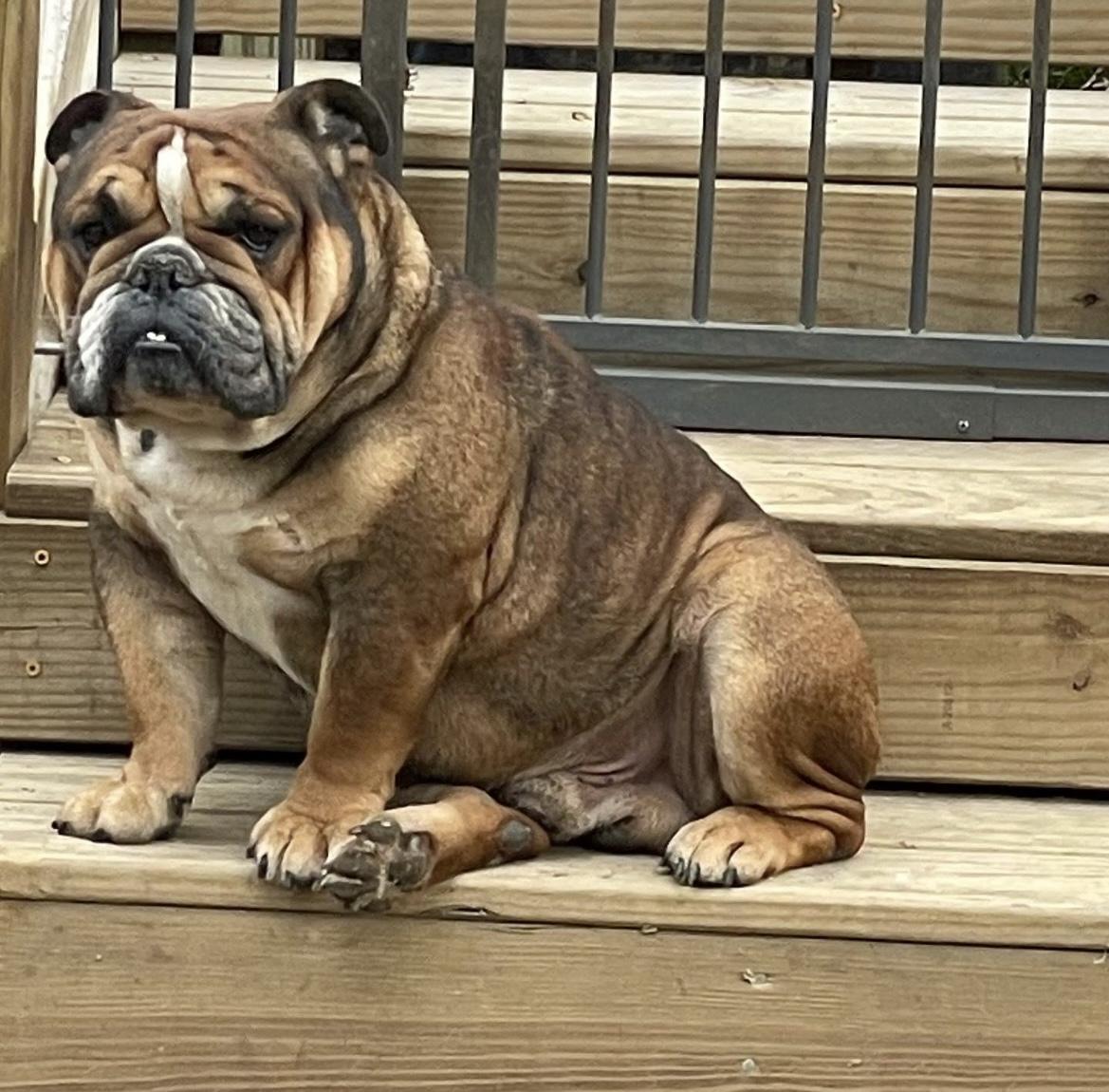 Pablo is a male Bulldog. Carefully selected as a great representative of his breed, Rod decided to make him part of their program. Rod has passed Good Dog’s screening process, which involved a review of their breeding practices, environment, and the mental and physical health of their dogs.