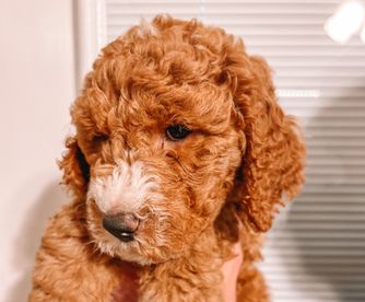 Pepper is an intense red Goldendoodle. She has a very sweet and loving temperament. She is fully health tested structurally and genetically.