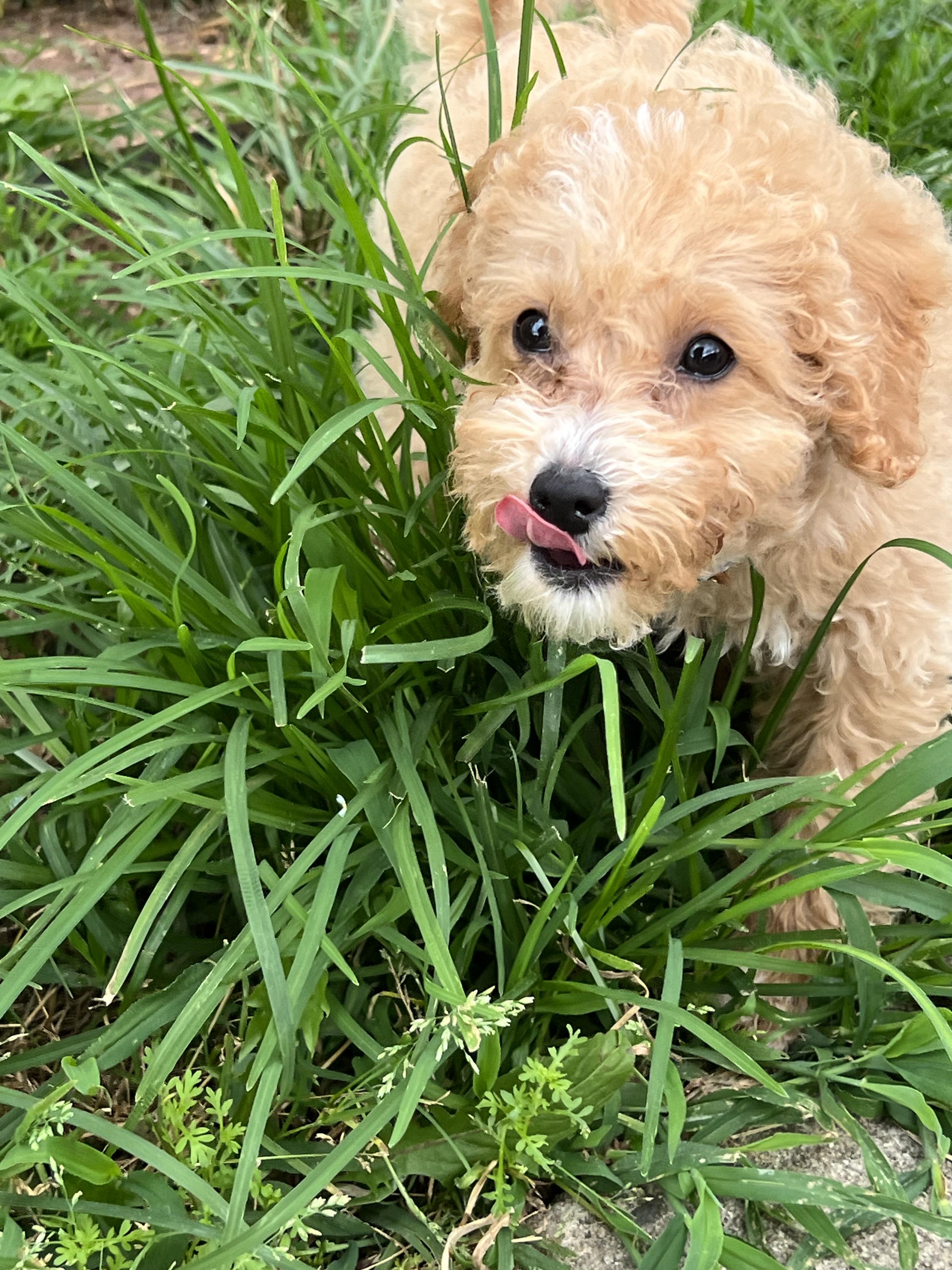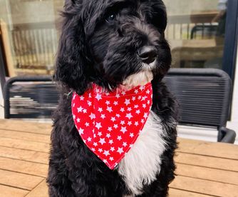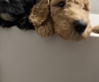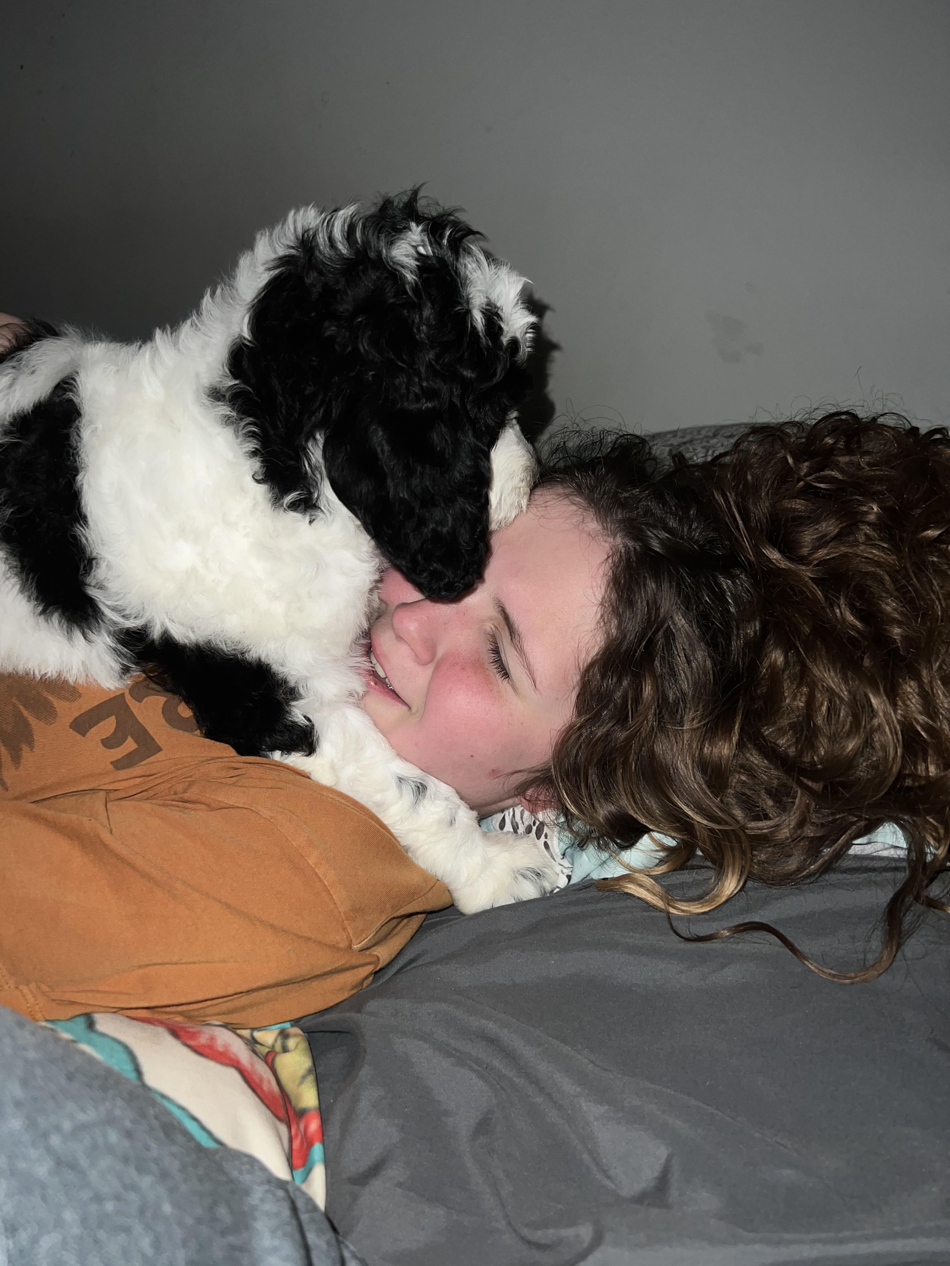 Curry is an F1 small/medium Beenedoodle. He love to run and play fetch with his human friend when he’s not rendezvousing the ladies. not rendezvousing the ladies