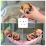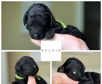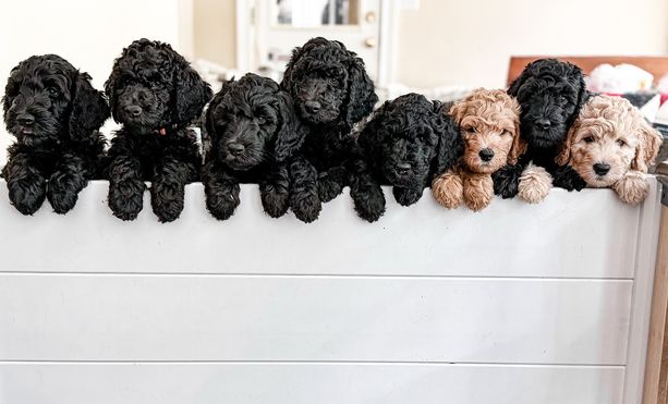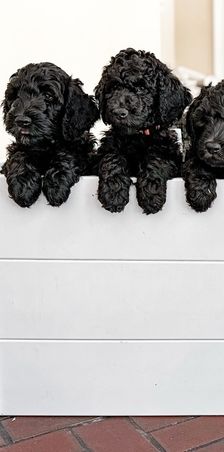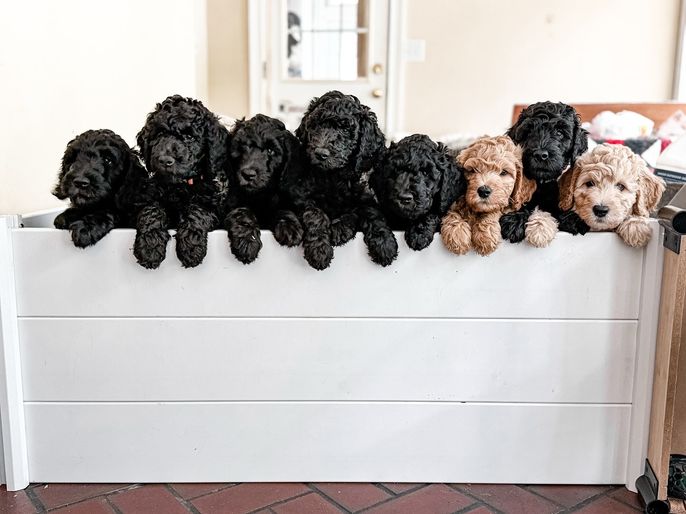 2 week old pups. All thriving and gaining weight steadily. This litter is extremely well-tempered, which is exactly what we were hoping for when breeding Winnie and Bear. Their temperaments are exceptional. Neither are big barkers or whiners. Neither bite or nip. Both are loving and independent. They also bond to all family members and love meeting new people. We hope to see these same traits in this litter.