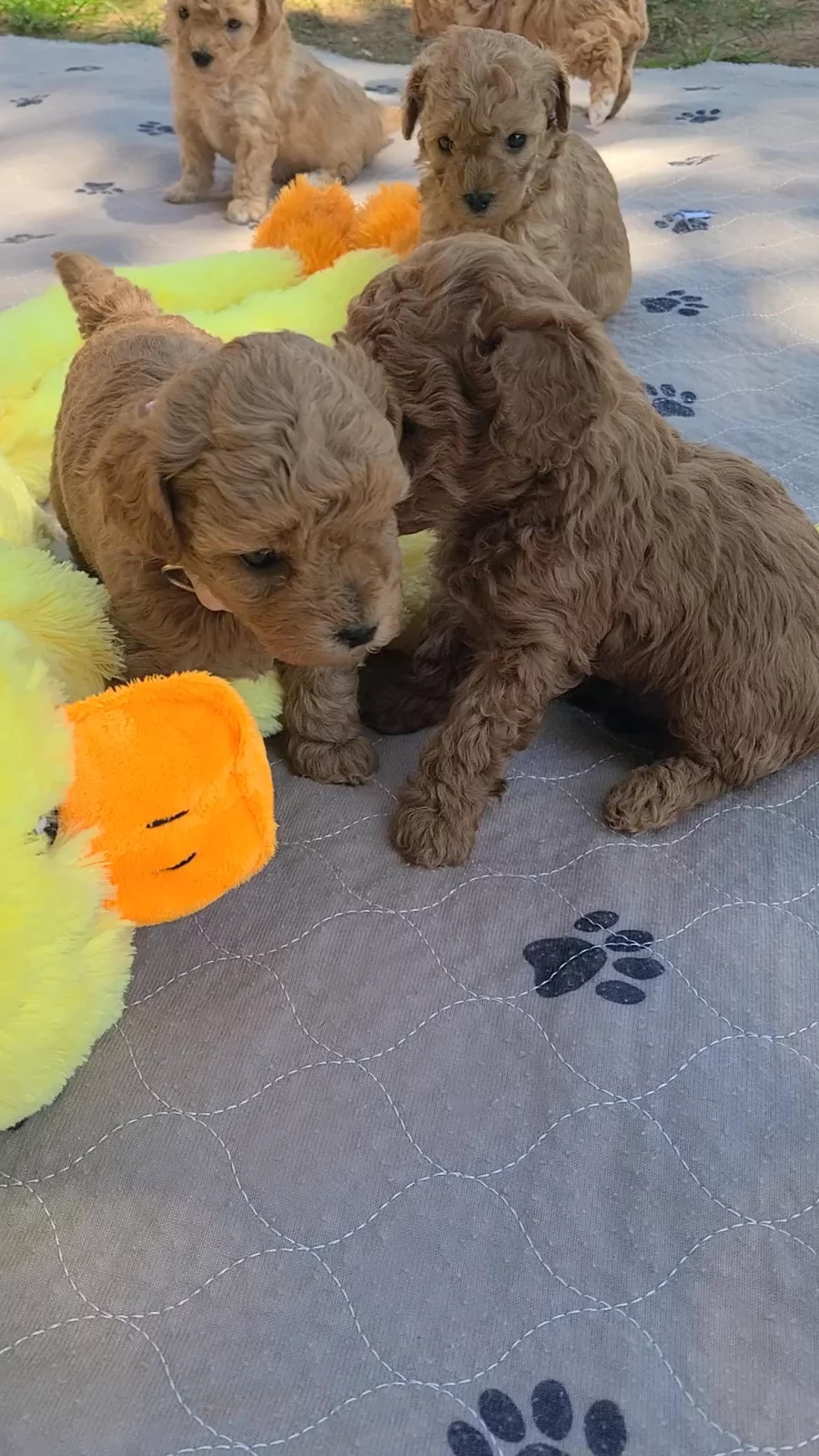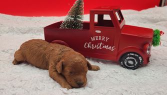 “Each puppy comes with Limited AKC registration, vaccination and deworming records, a sample bag of their current food, tail docking and dewclaw removal (for Poodles), and a sample of NuVet Plus vitamins. Puppies are well-socialized, vet-checked, and ready to bring years of love to their new families. A $300 non-refundable deposit is required to reserve a puppy. This amount is applied toward the total purchase price and guarantees your selection order. Deposits are non-transferable to future litters unless otherwise discussed and approved.”