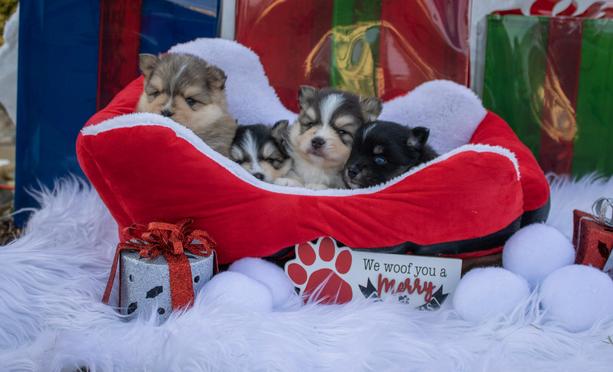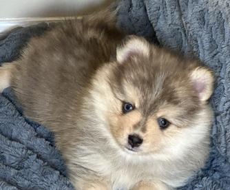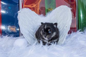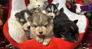 Ruby is one of my most GEORGEOUS females because of all the different colors she has. She is such a good mom, smart and sweet Pomsky. Always is wanting a belly rub which is popular with all of my Pomskys.