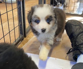 Our Miniature Australian Shepherd puppies include blue merle, black tri, red tri, and red merle. Toy Australian Shepherd puppies include black tri, blue merle, red merle, and red tri. Miniature American Shepherd puppies include red tri-color, black tri, red merle, and blue merle. Colors will vary depending on the parent dogs.